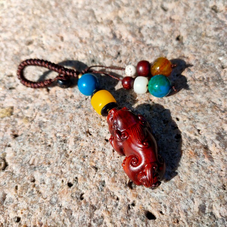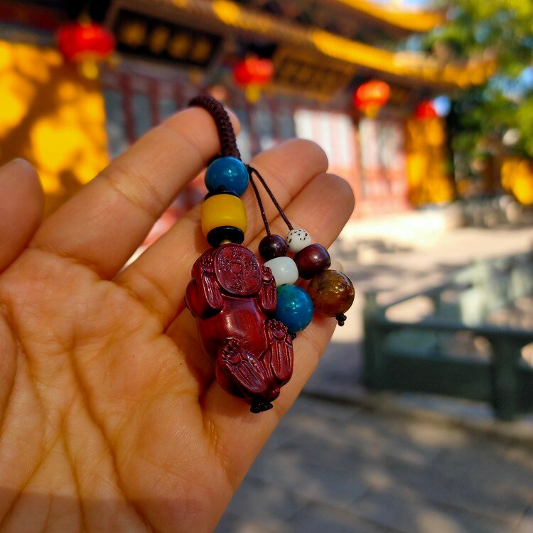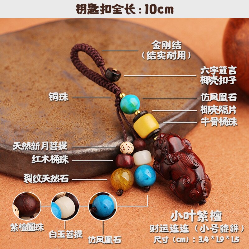 Putuo Mountain Monastery Overpass Incense Stove Key Buckle Leopard Leopard Small Leaves Purple Sandalwood Delicate Little Handlebar Piece