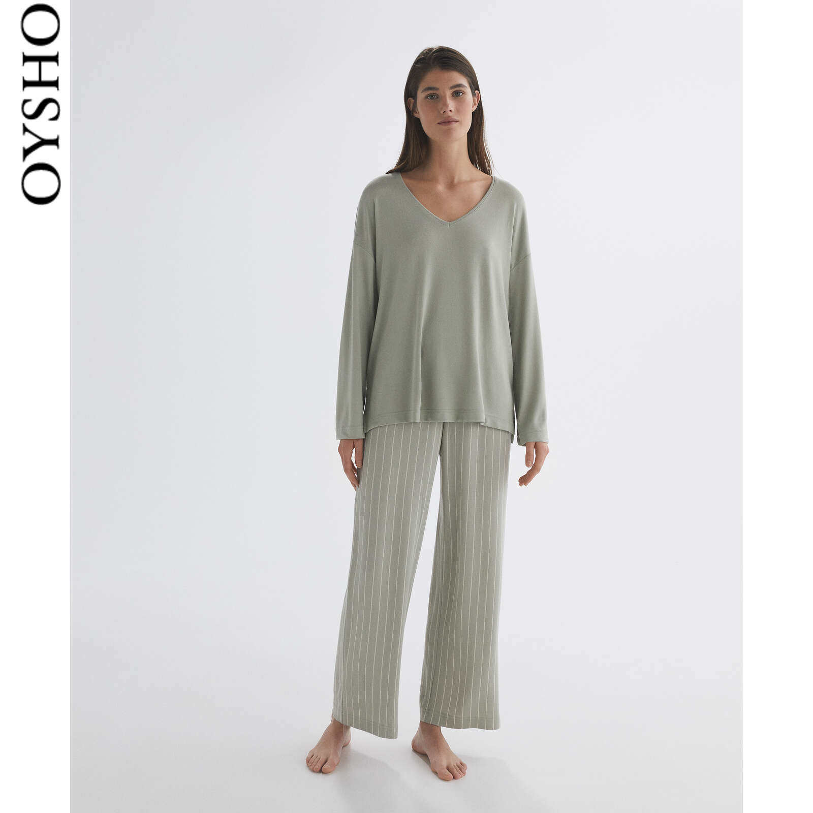 Spring Summer Discount Oyho Soft Straight Drum Elastic Waist Up Striped Home Long Sleep Pants 30347181916
