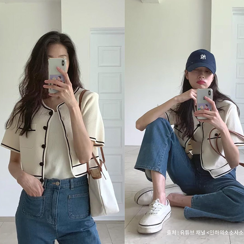 yournamehere Korean cardigan two-piece women's fashion age-reducing shorts knitted small fragrance suit women's autumn