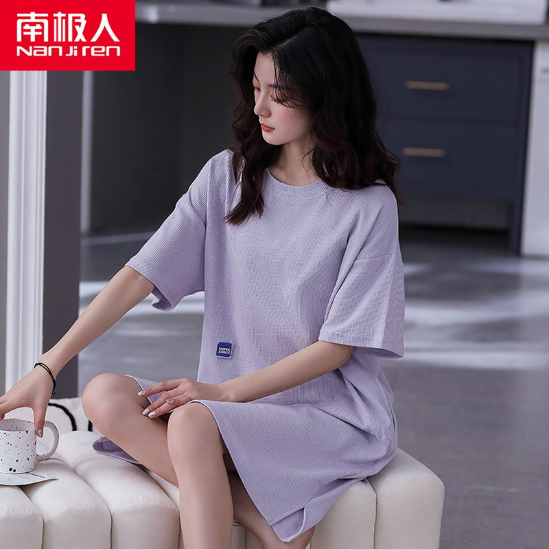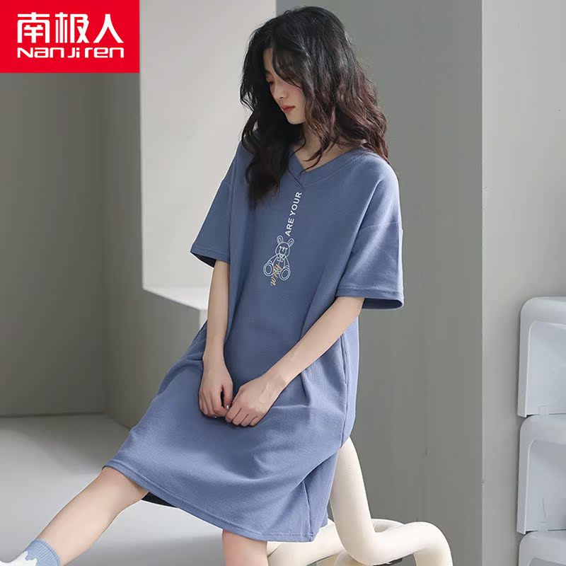 Short sleeve cotton sleepy dress lady summer thin pajamas spring and summer all cotton conjunction Han sweet cute home suit