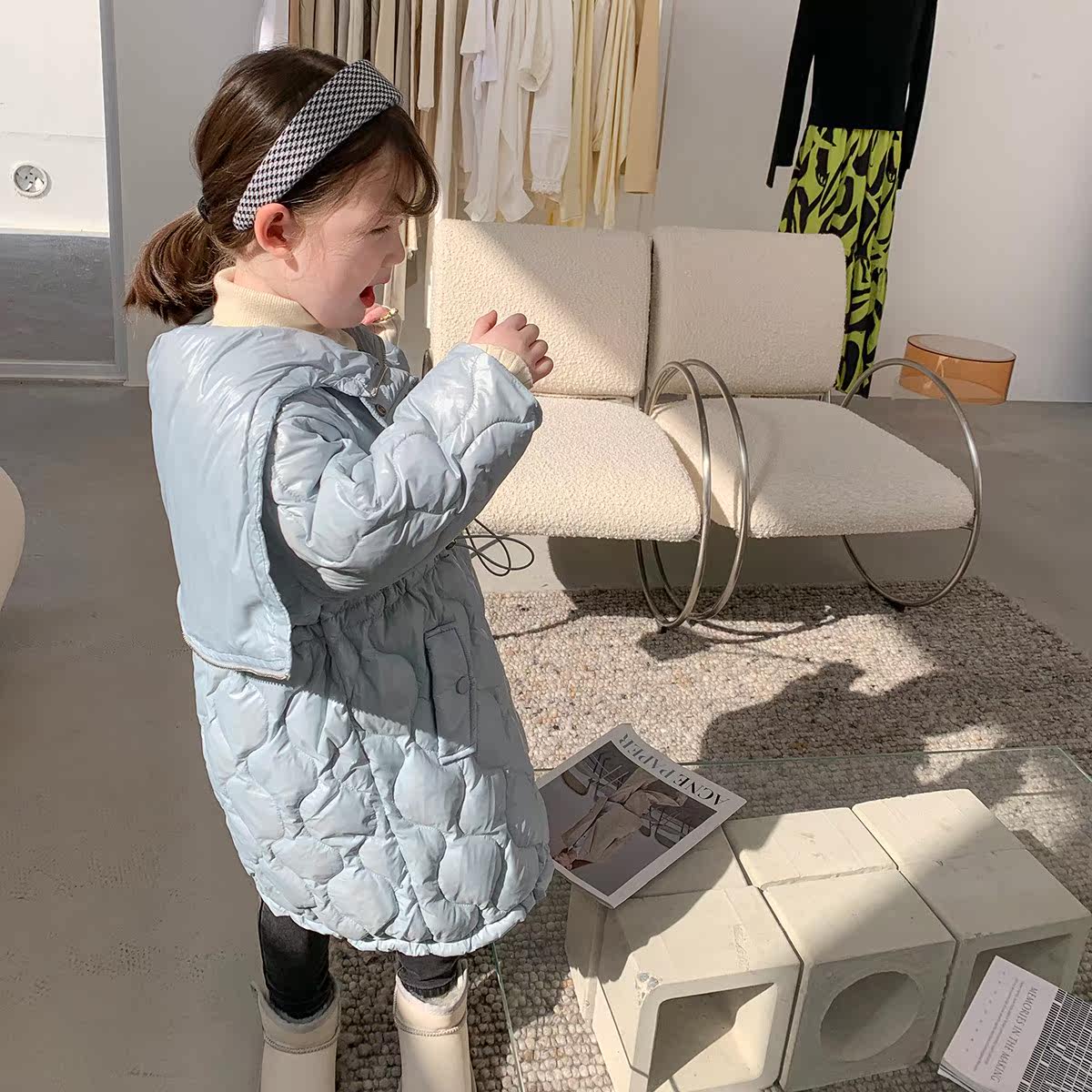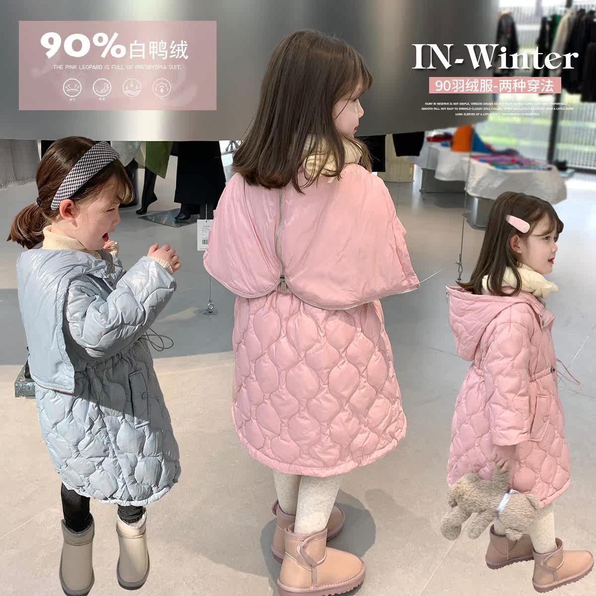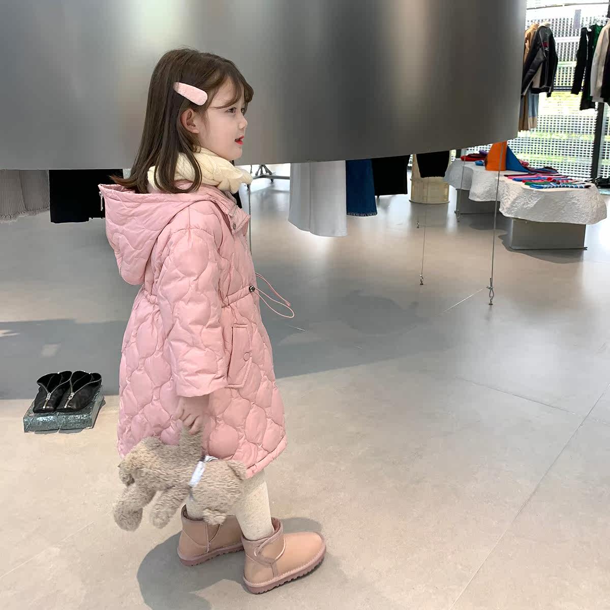 Momo Family Custom Children's Clothing 2021 New Girl's Mid-length Down Jacket Baby 90 White Duck Fleece Jacket Winter Coat Thick
