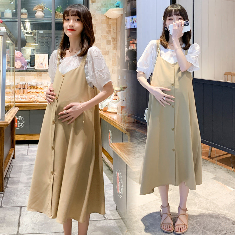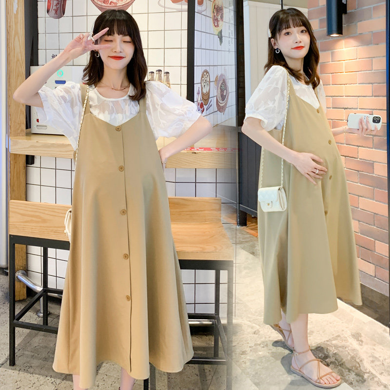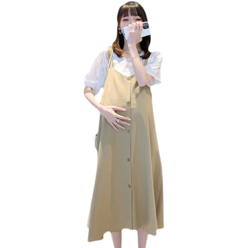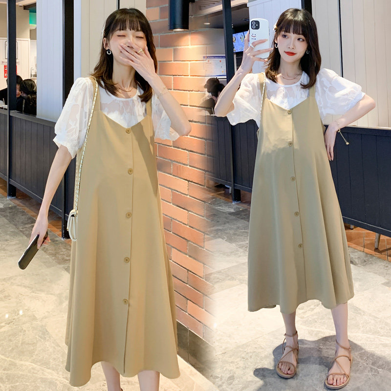 2022 large size PREGNANT WOMAN SUMMER FASHION STYLISH STYLE TWO STYLE FOREIGN DRESS CUDDLING BAG DRESS WITH LONG VERSION SKIRT MESH RED
