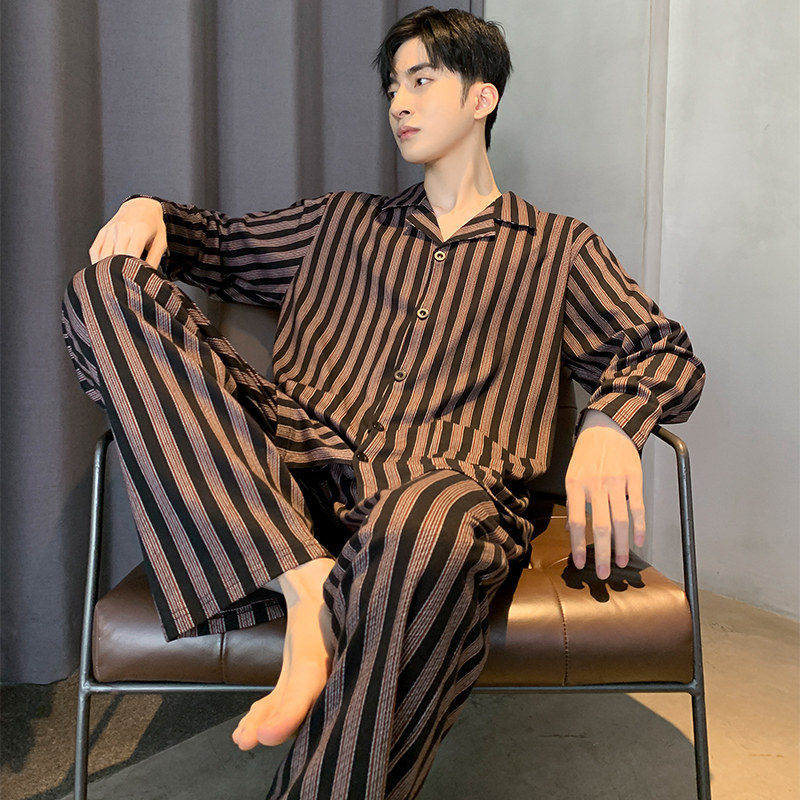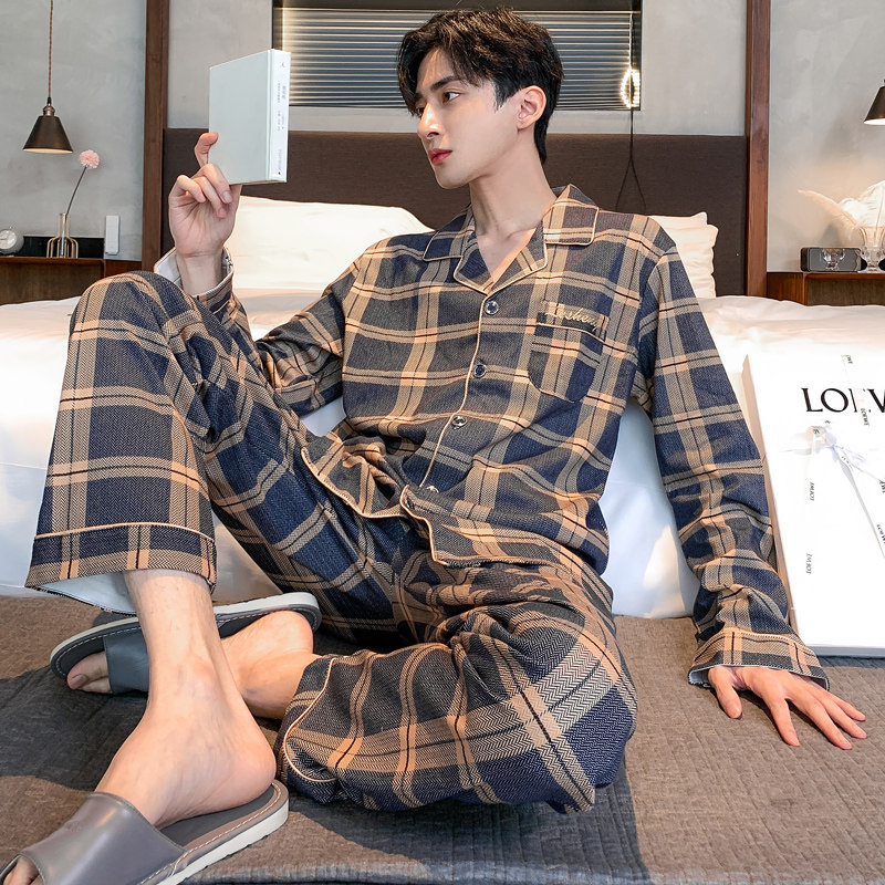 2022 new sleepwear men's spring and autumn pure cotton long sleeve home clothes men's all season style All cotton set