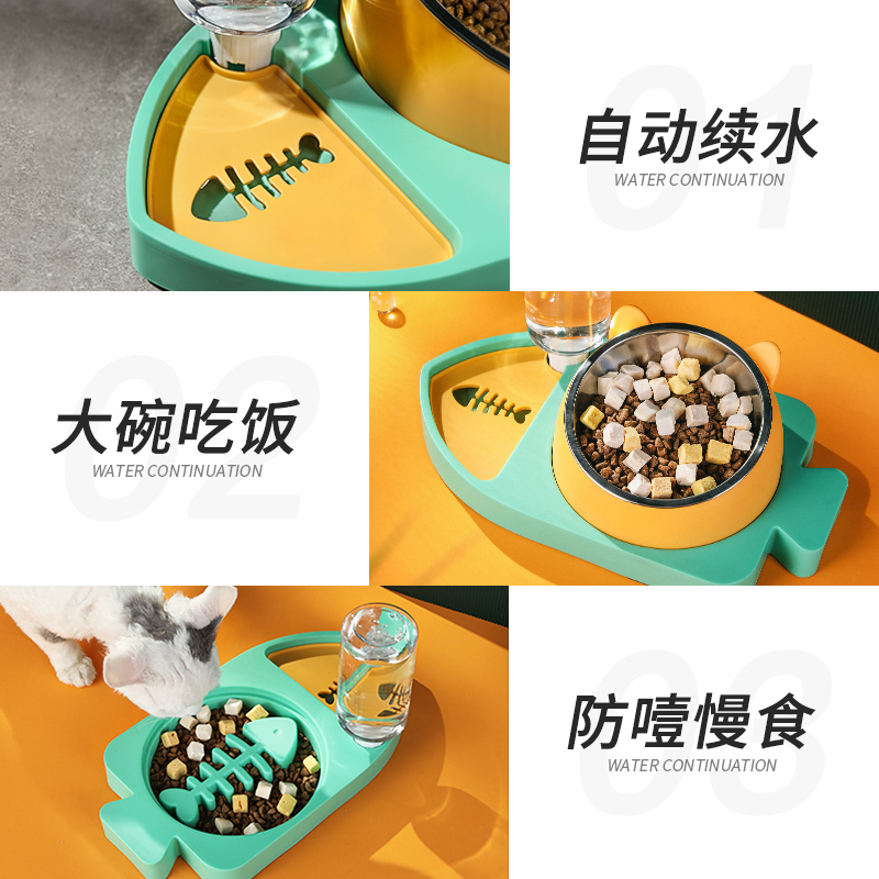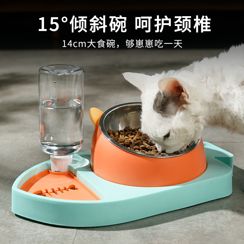 Cat Bowl Cat Food Basin Kitty Supplies Cat Bowl Double Bowl Automatic Drinking Water Protection Cervical Cat Food Anti-Overturning Dog Bowl Dog Basin