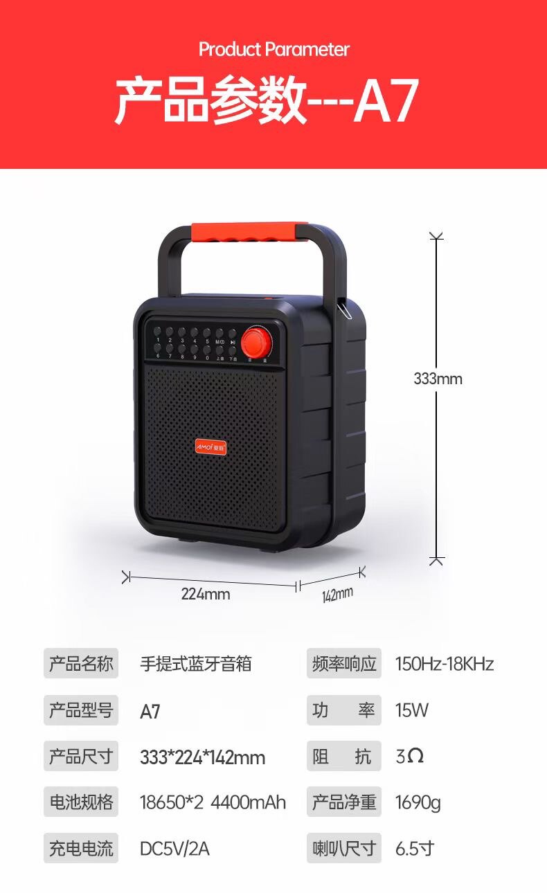 Amoi A7 outdoor portable audio bluetooth speaker 6 5 inch speaker digital selection single loop super long playback