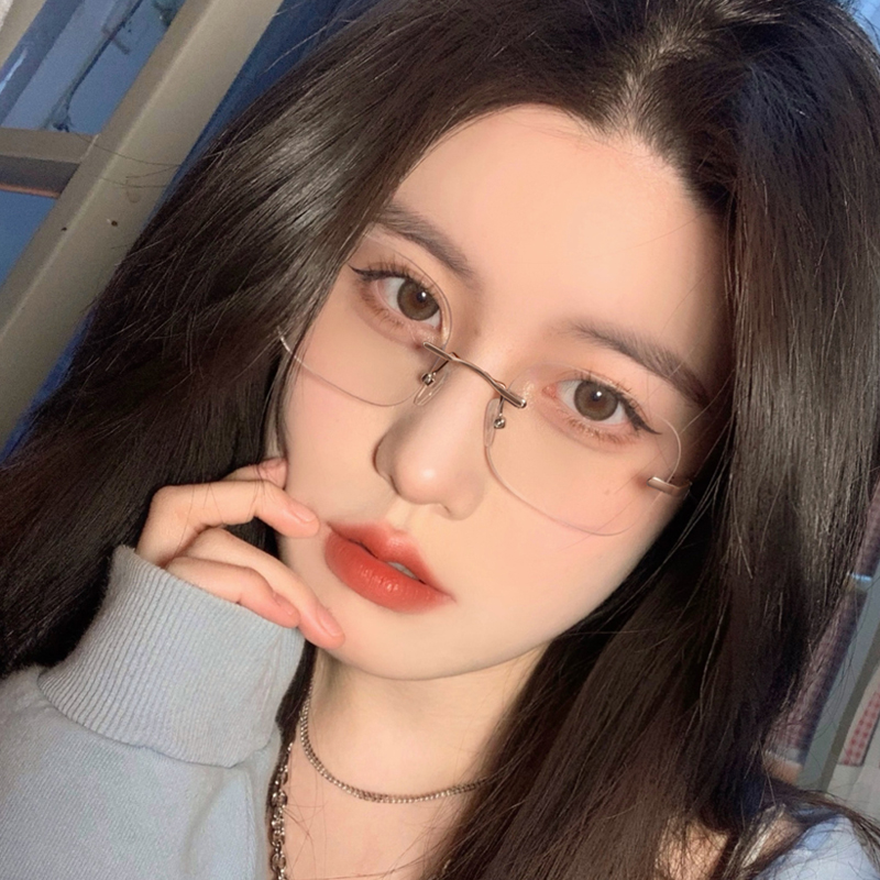 Ultra-light pure titanium frameless myopia glasses women can be equipped with a degree of plain face, big frame, small eyes, frameless frame