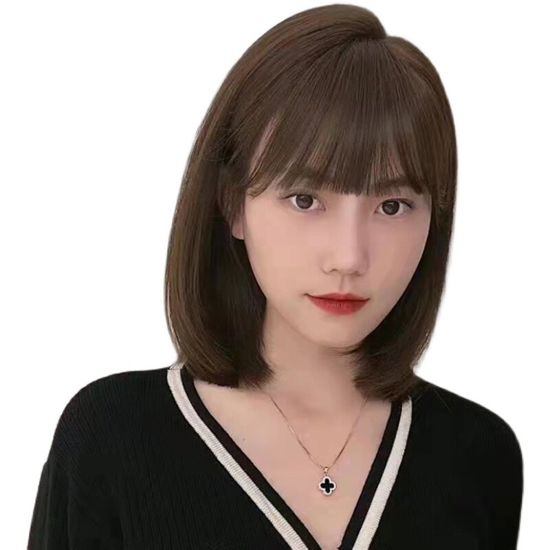Wig Woman Short Hair Real Hair Full Real Person Web Red Fashion Minus Age Suitable For Round Face Bobo Head Bald Head Full Hair Cover