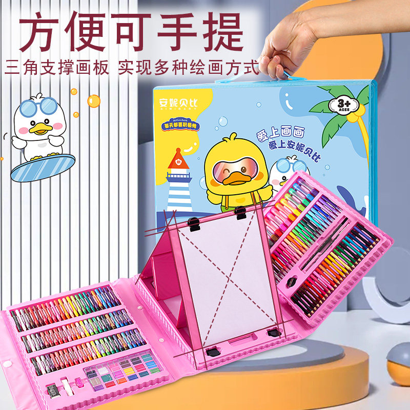 (with easel) pink -208 pieces of paintbrush suit (send 10 ben painted this gift bag) (with easel) blue -208 pieces of paintbrush suit (send 10 this painted this gift bag)