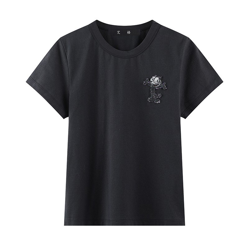 Lashabel 2023 summer new round-collar cartoon embroidered short sleeve T-shirt casual cotton blouse