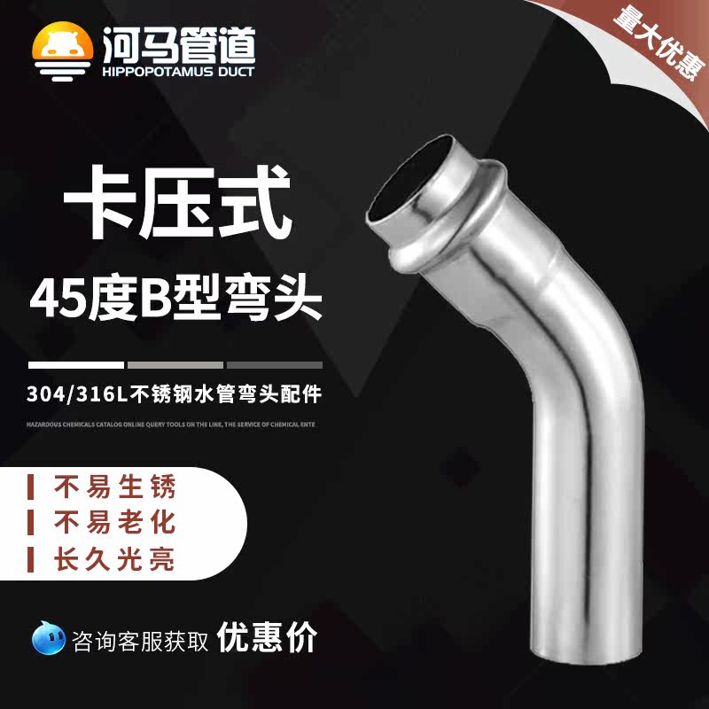 304 stainless steel 45-degree B-type elbow card pressure sanitary grade 4 points 6 points household engineering tap water pipe fittings