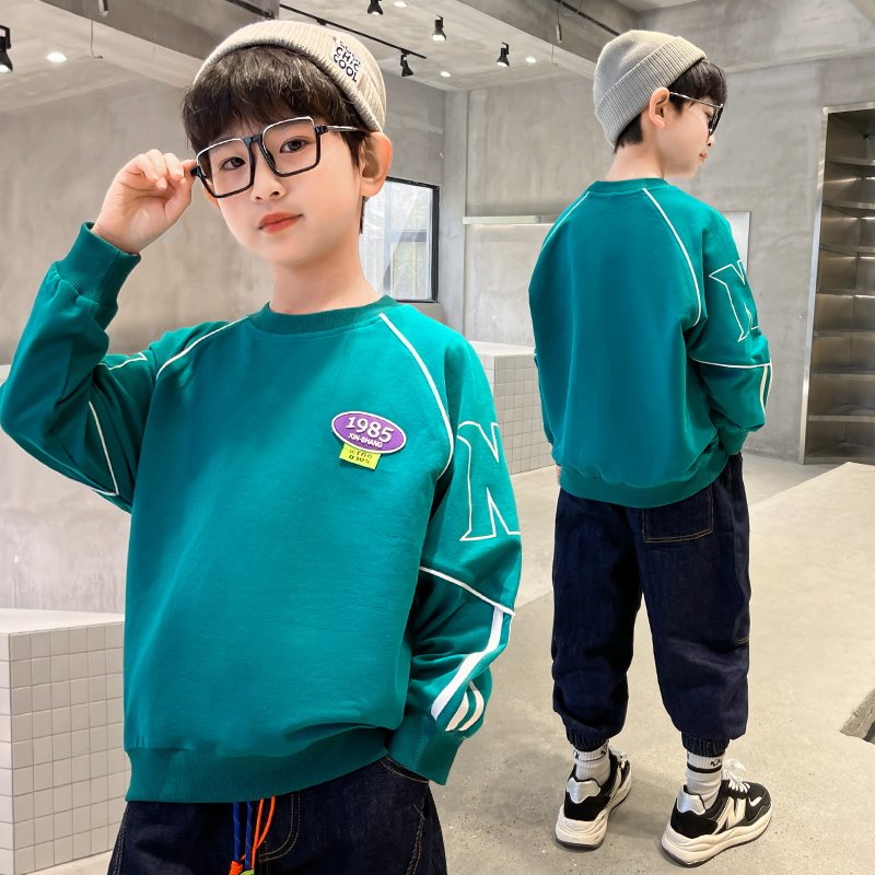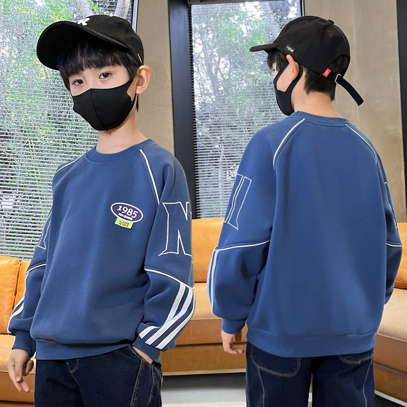Children's clothes boy long sleeve thick cotton T foreign pie 2022 new big boy spring autumn clothing T-shirt children hit undershirt round collar blouses