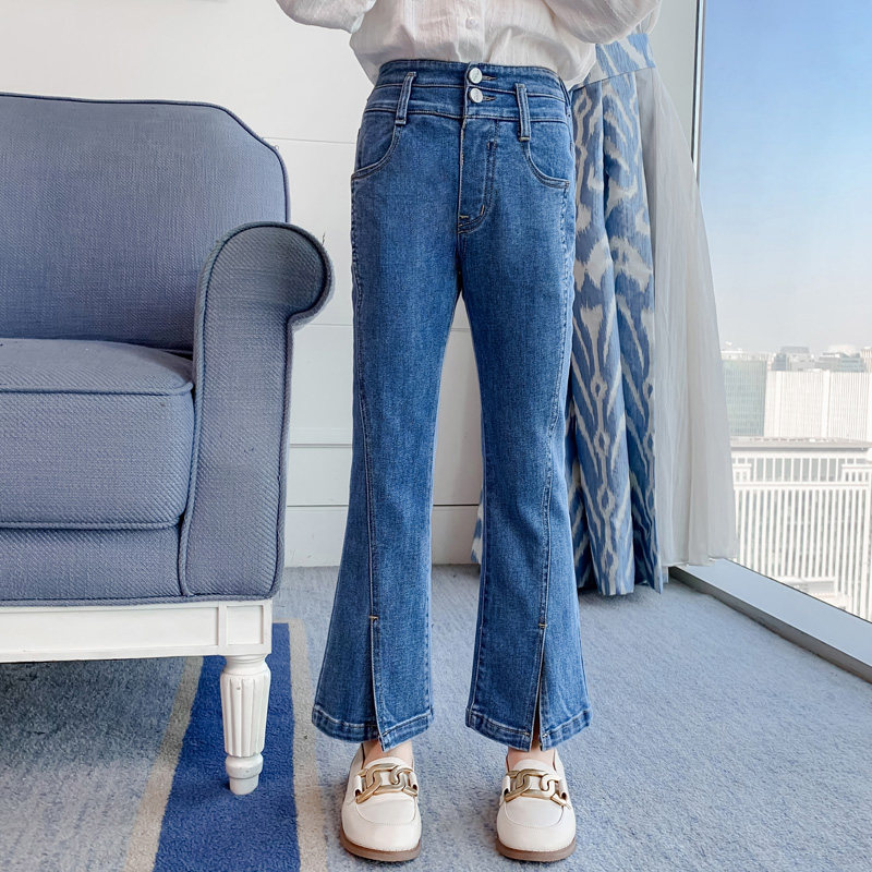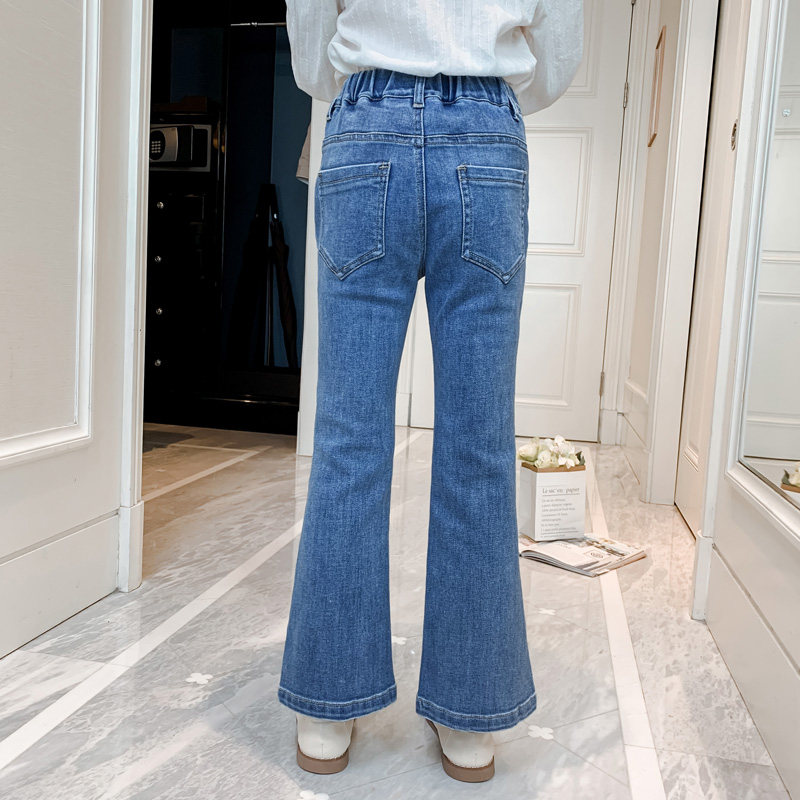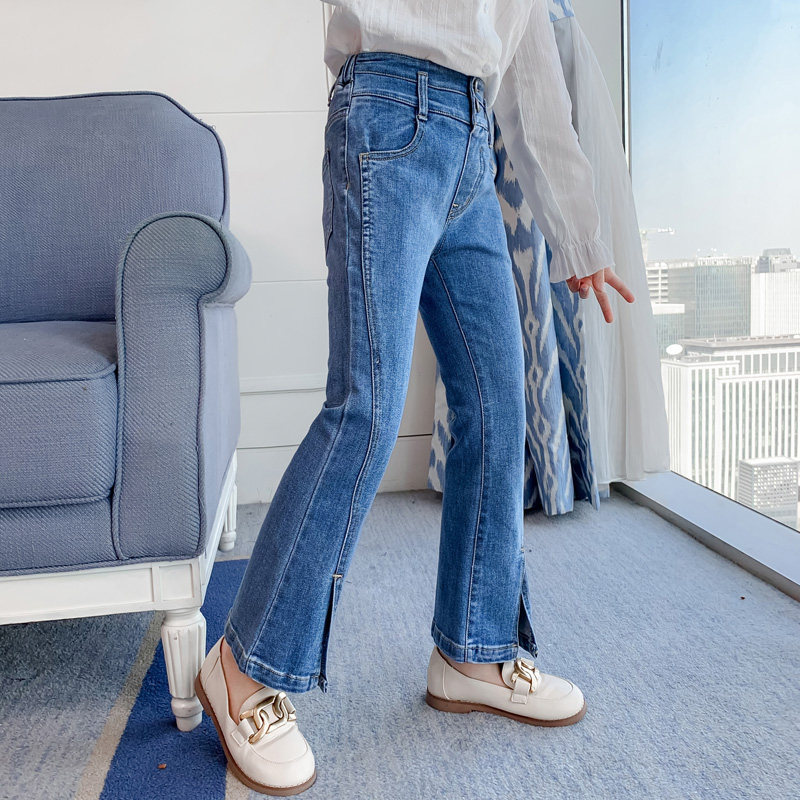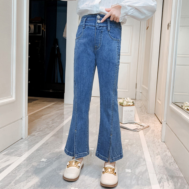 Girl Jeans Spring Autumn 2022 New Autumn Clothing Foreign Pie Long Pants Korean Version Trendy Children Open Fork Horn Pants Tide