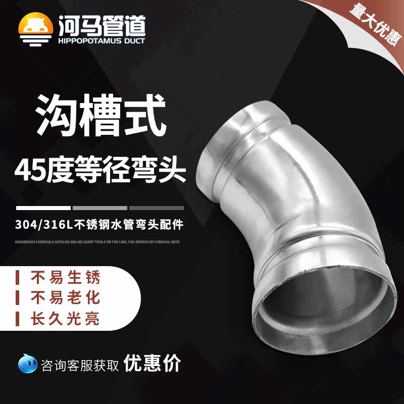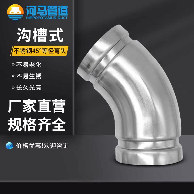 304 stainless steel groove 45 degree elbow 316 stainless steel fire water supply and drainage pipe groove elbow connection pipe fittings