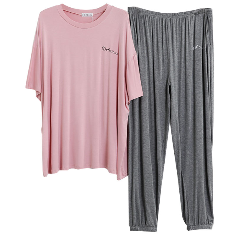 Modal pajamas women's large size 200 catties summer short-sleeved trousers home clothes fat mm thin section plus fertilizer to increase suit