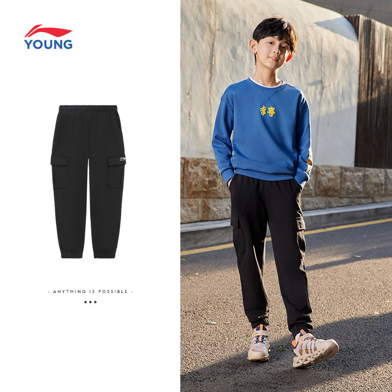 Li Ning Tong Clothing Pants Men's Little Big Boy Outdoor Series Pants Pants Officer Webbeam Footed Knitted Sports Trousers YKLS165