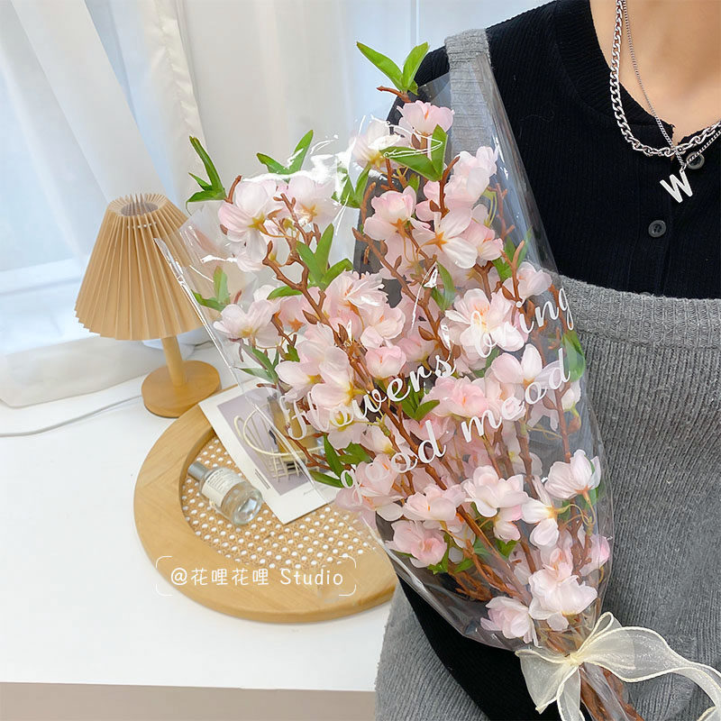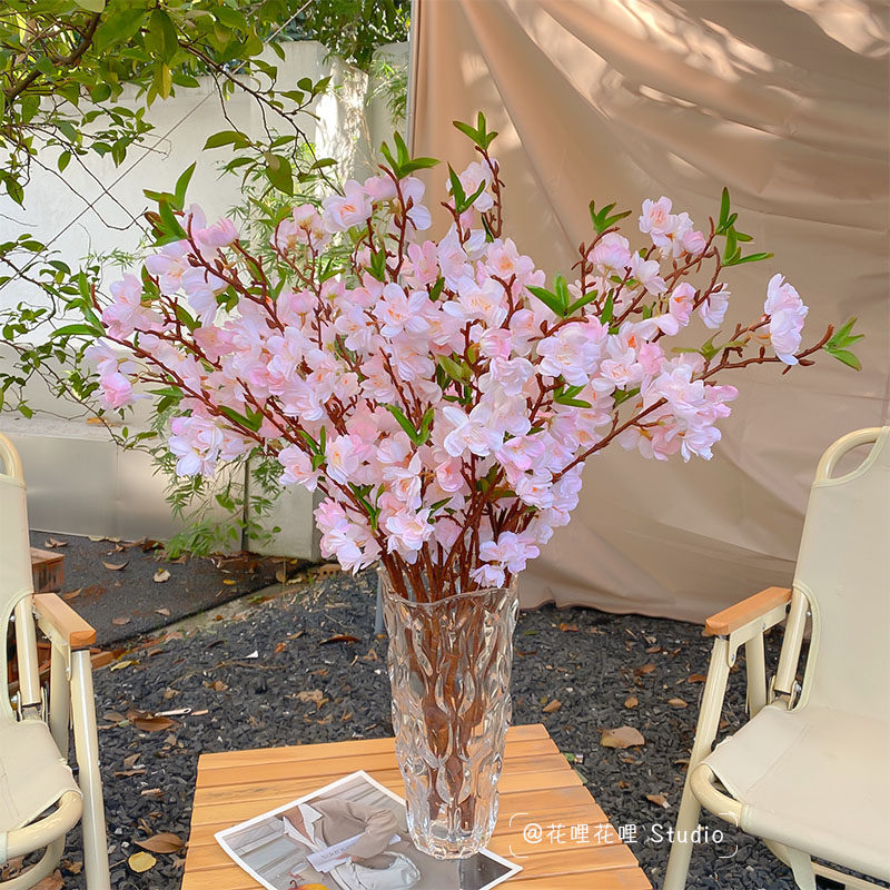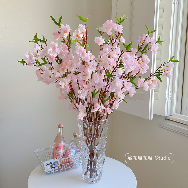 Peach blossom branch simulation flower living room fake flower peach blossom branch decoration table decoration flower decoration drying flower high-end desktop flower