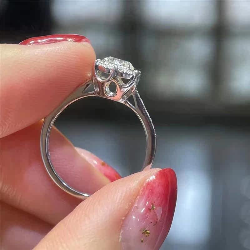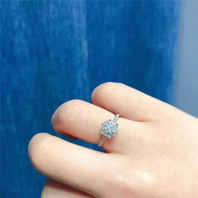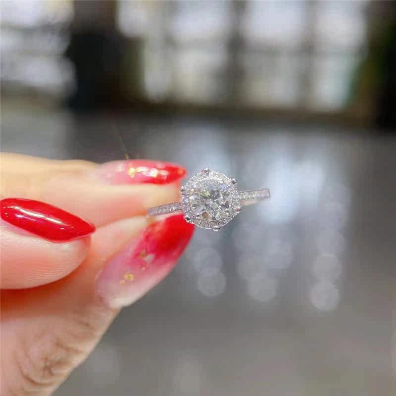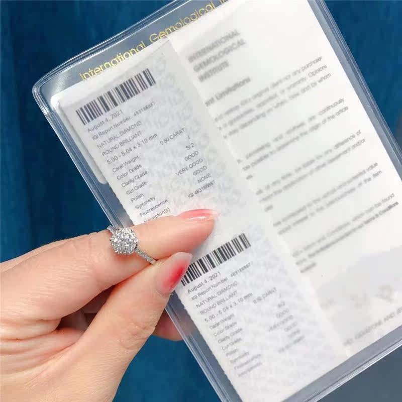 Round main drill 50 in color J color vice drill 14 points 18K white gold ring wedding ring female table face with big IGI certificate