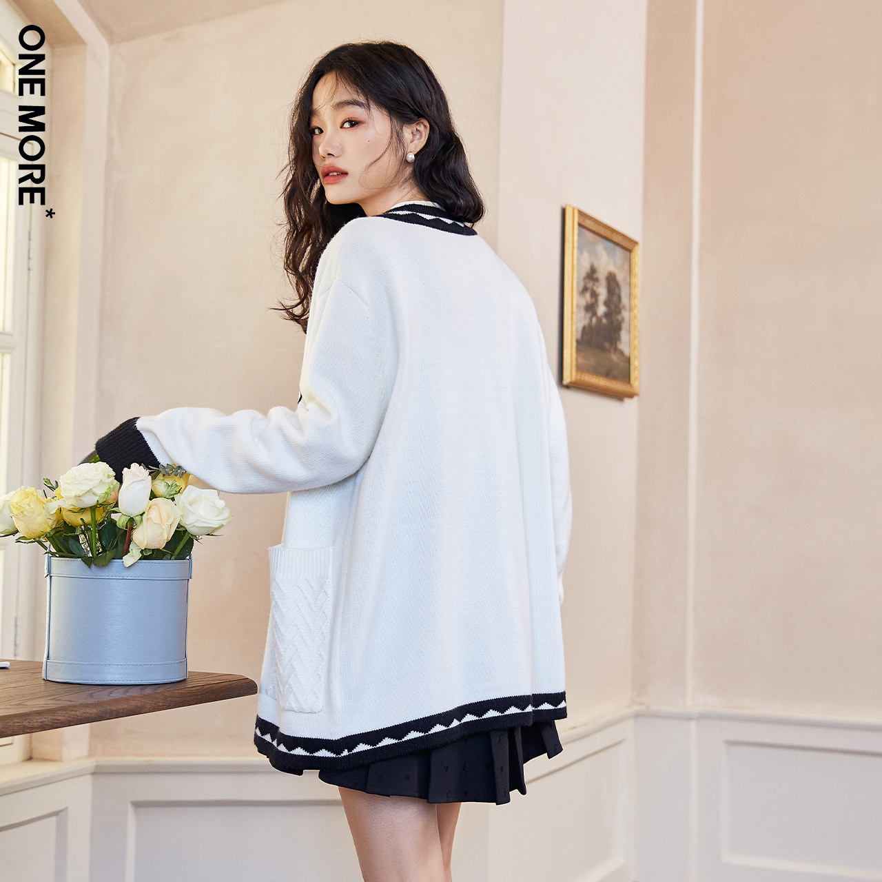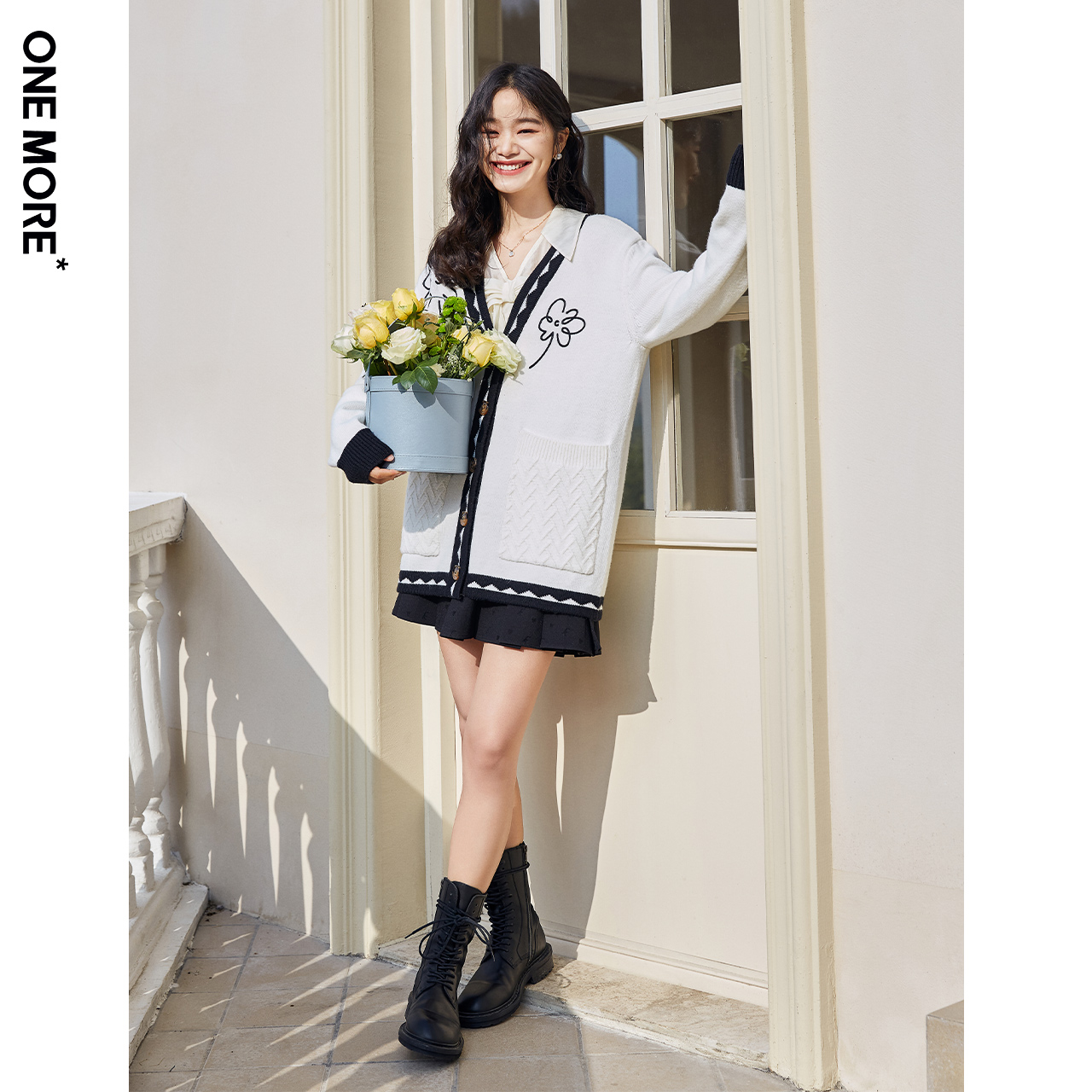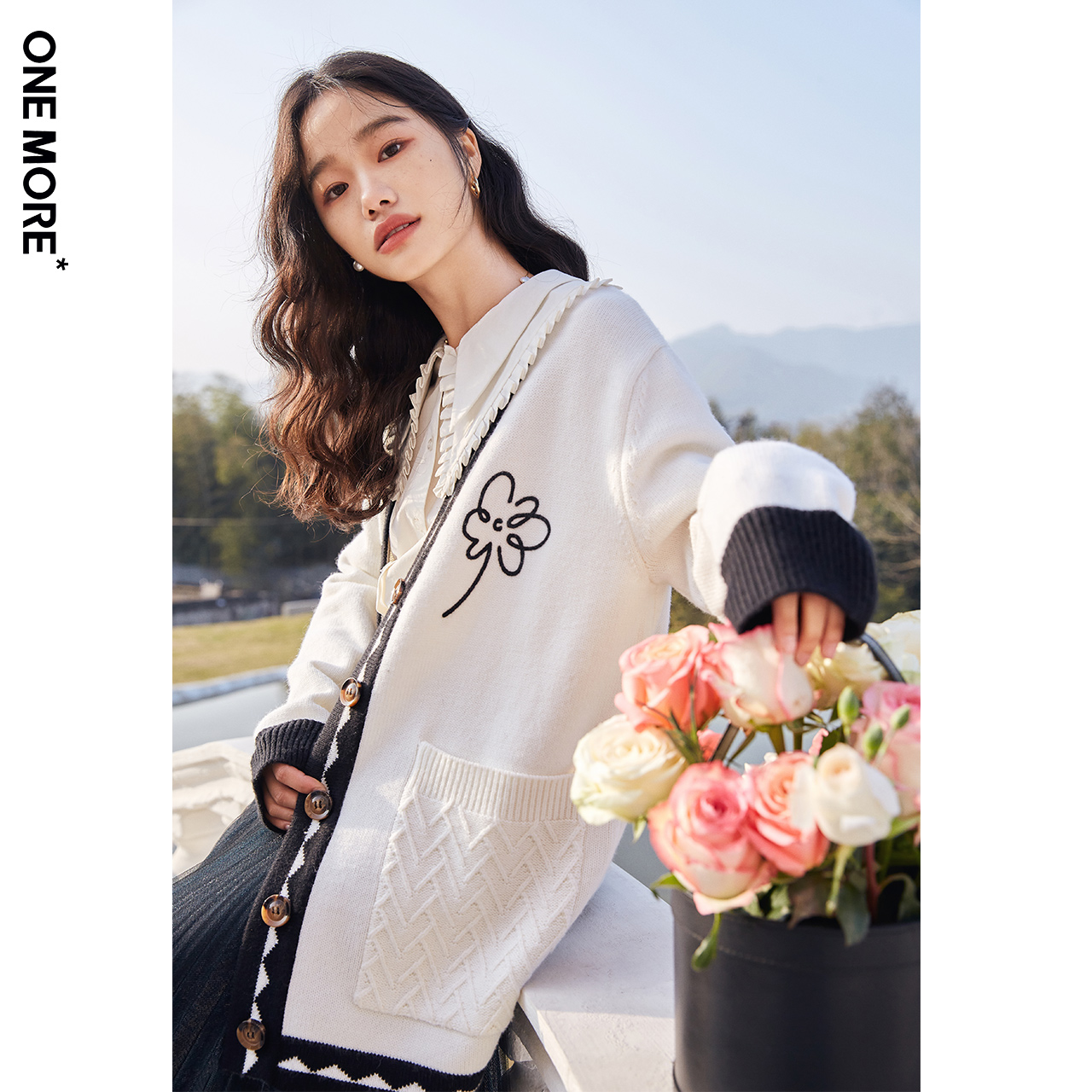 ONEMORE2022 Spring new small flower knit cardigan white cardigan sweater with female loose jacket design