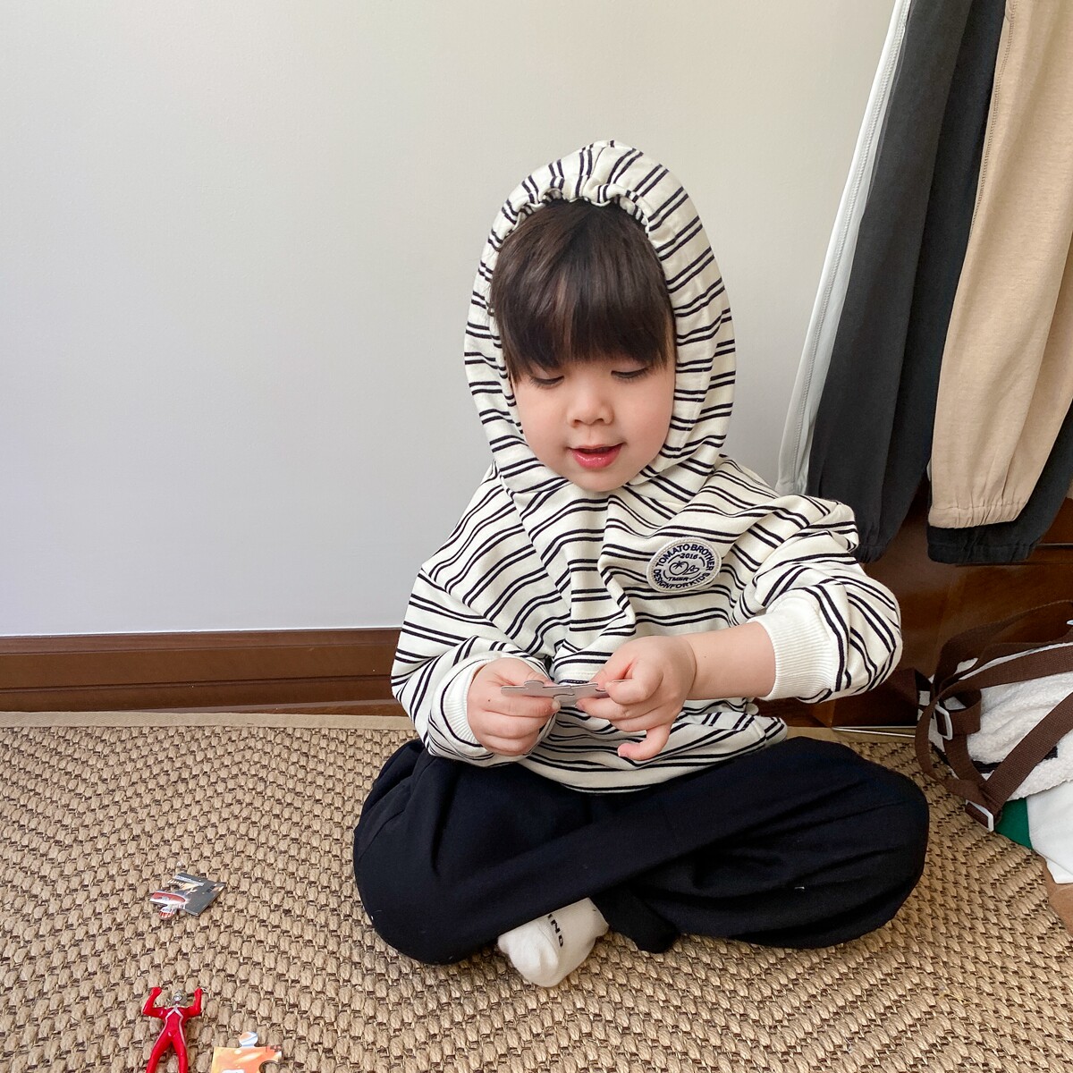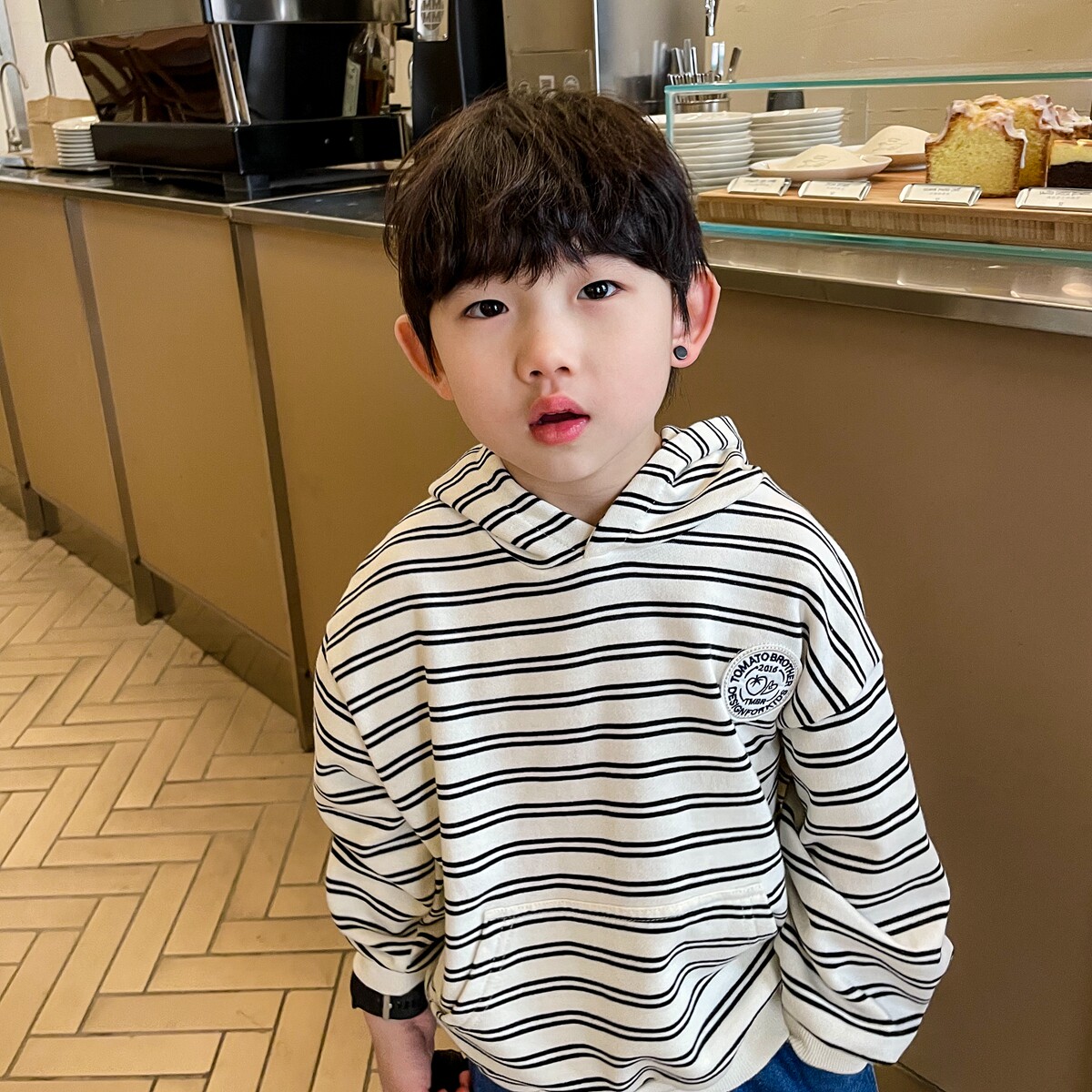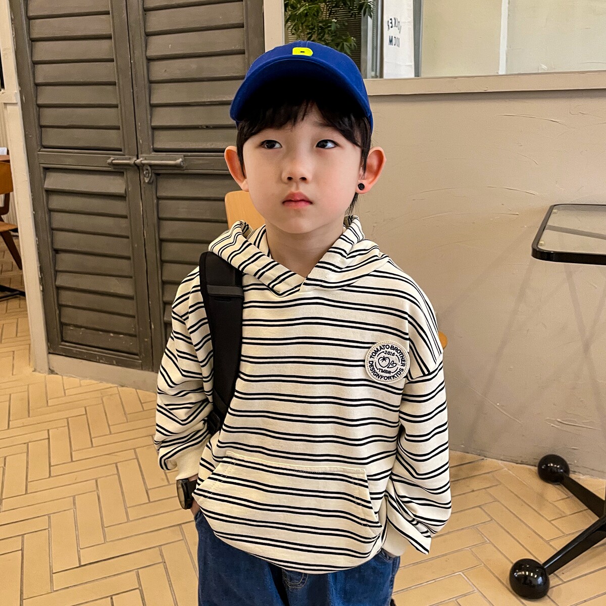 Tomato Younger Brother (Cute) 2022 Spring loaded with new boy striped Lianhood Sports shirt Han version pure cotton baby boom