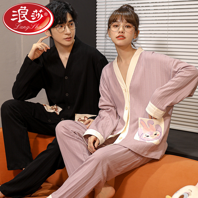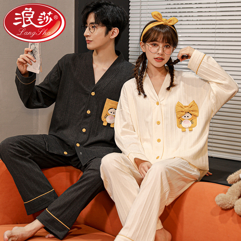 Couple pajamas women's spring and autumn pure cotton long-sleeved 2023 new bear suit men's home clothes one man and one woman