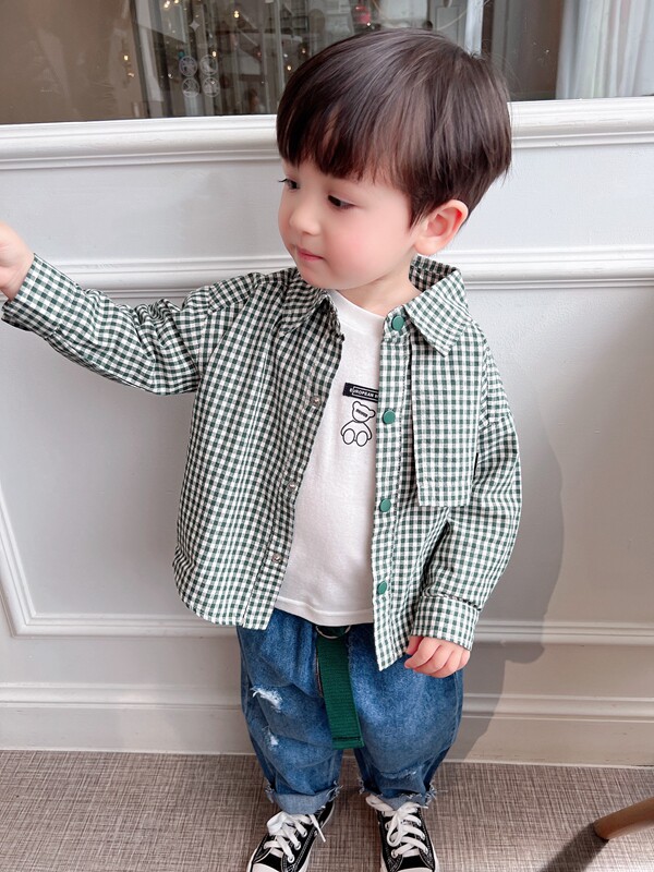 Classic Plaid ~ 2022 Spring Boy Pure Cotton Plaid Shirt Mid-Boy Baby Spring Autumn Foreign Pie Long Sleeve Shirt