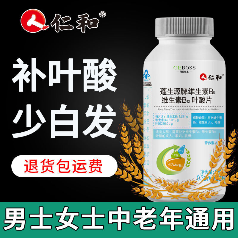 Folic acid tablets middle-aged and elderly white hair supplement black hair active men and women vitamin B6 tablets to treat white hair official