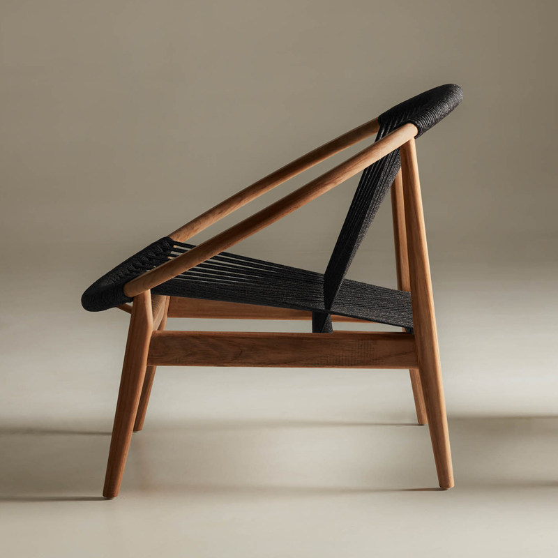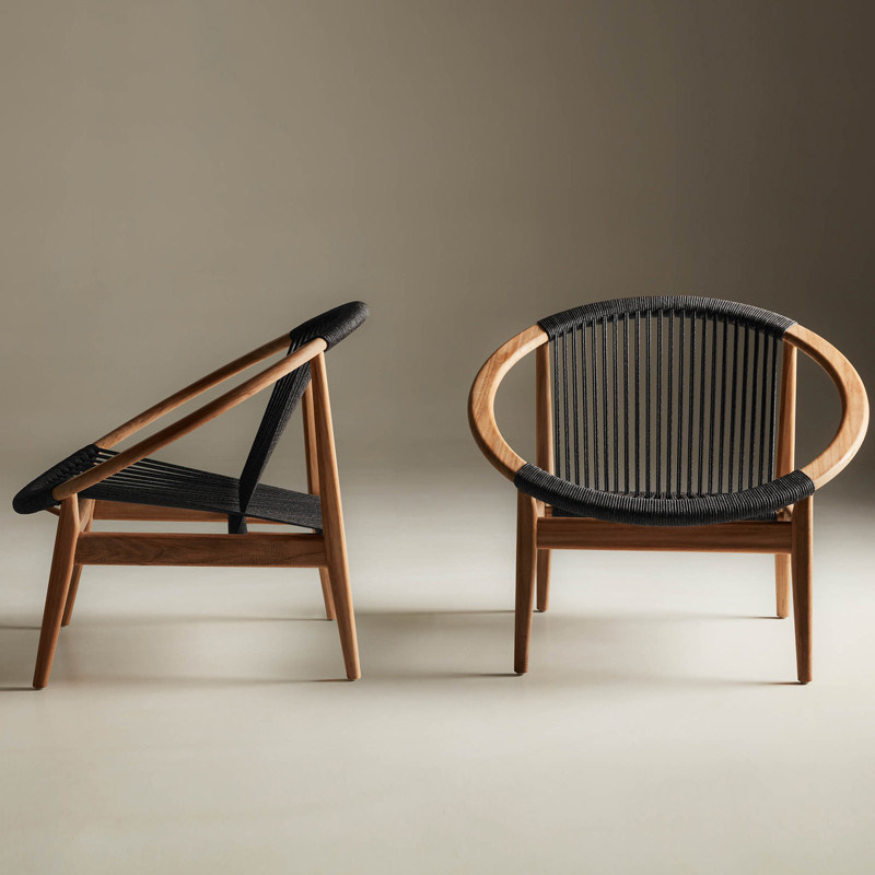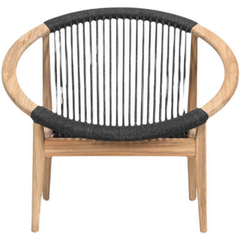 Single solid wood sofa chair reclining chair rattan Nordic balcony lazy rattan chair round log Nordic outdoor courtyard