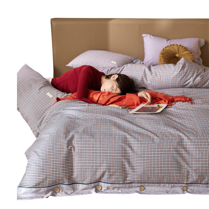 Cotton and linen brushed cow goods clearance Roland home textile autumn and winter four-piece set thickened bedding quilt cover sheet type