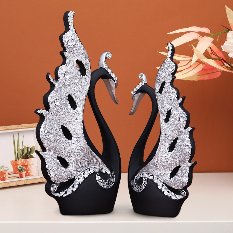 Home Residence Ornament Living Room Wine Cabinet Decoration Small Swing Piece Creative Wedding Gift Resin Handicraft Lovers Swan Furnishing