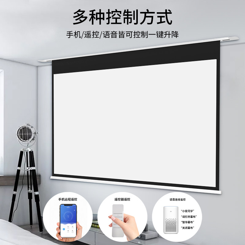 UMMARY nut projection electric screen embedded smallpox curtain household remote control automatic lifting and dropping HD projector cloth