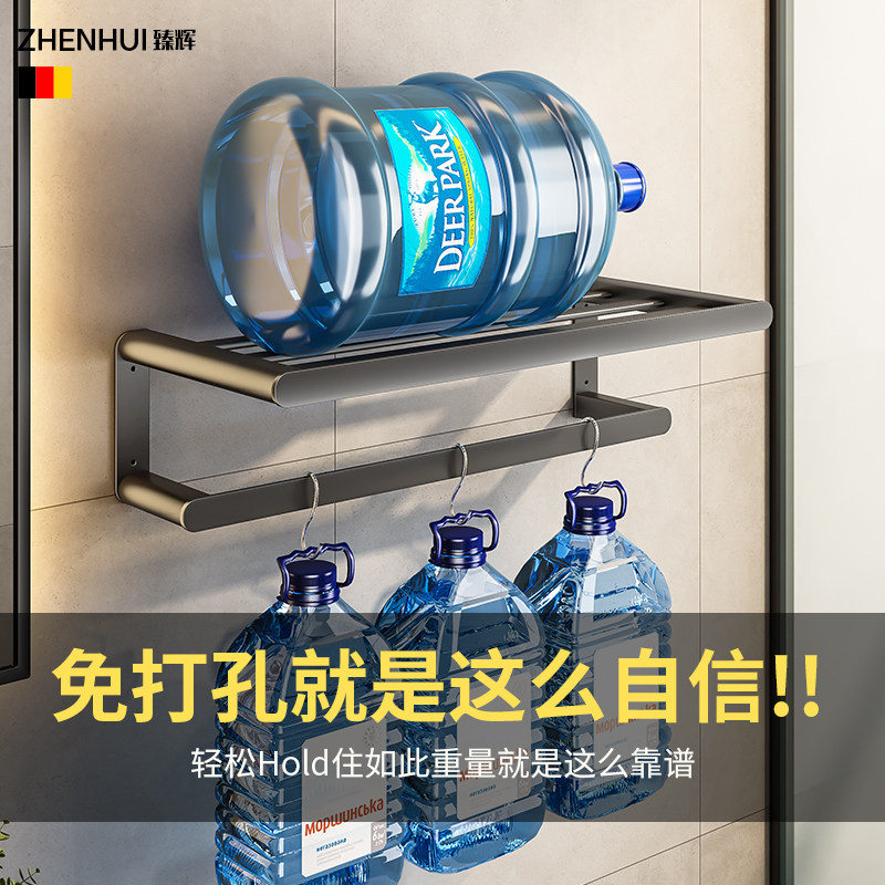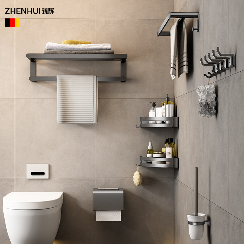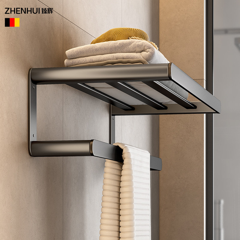 Free Punch Gun Grey Hair Towel Rack Bathroom Makeup Room Shelve Wall-mounted Bath Towel Rack Light Lavish Bathroom Toilet