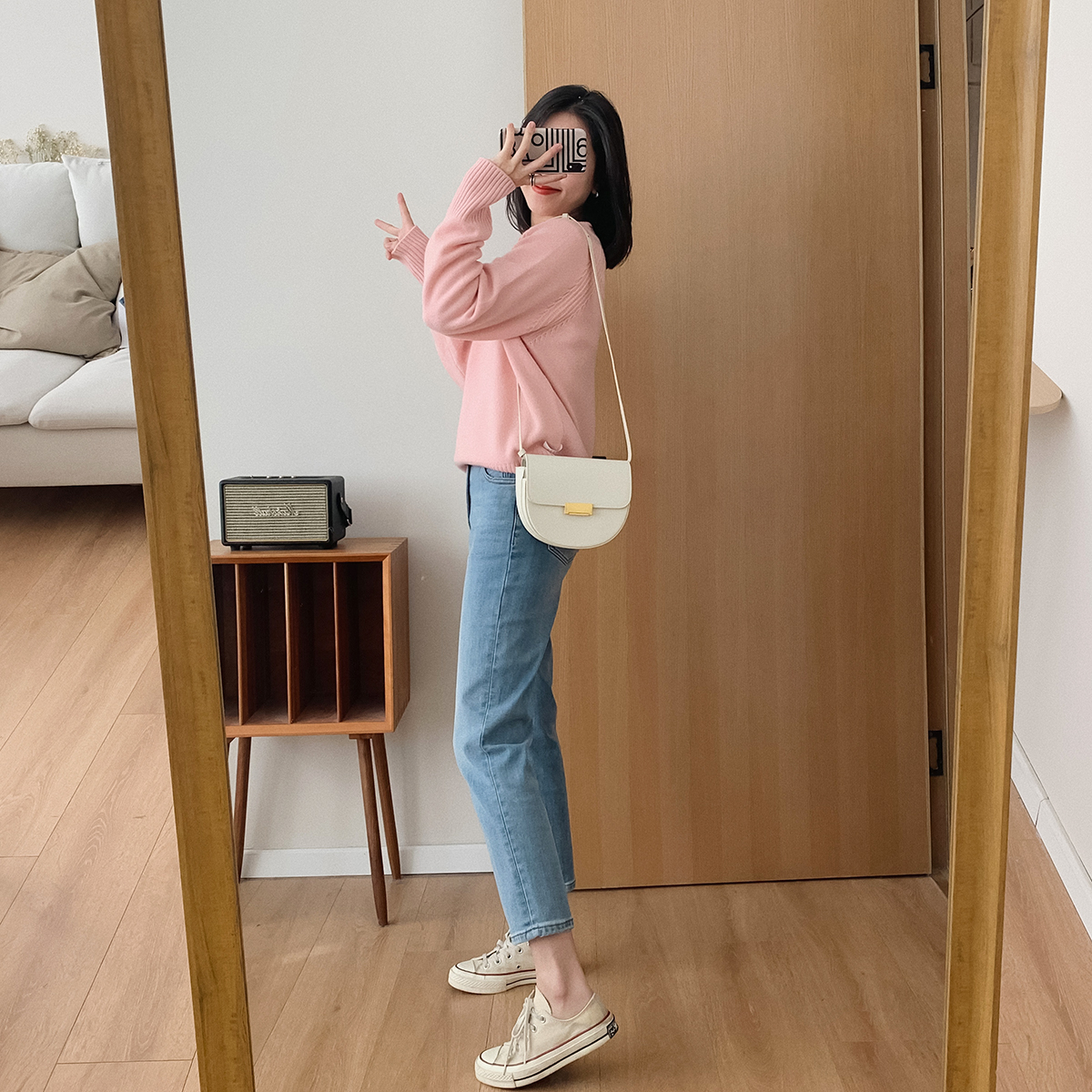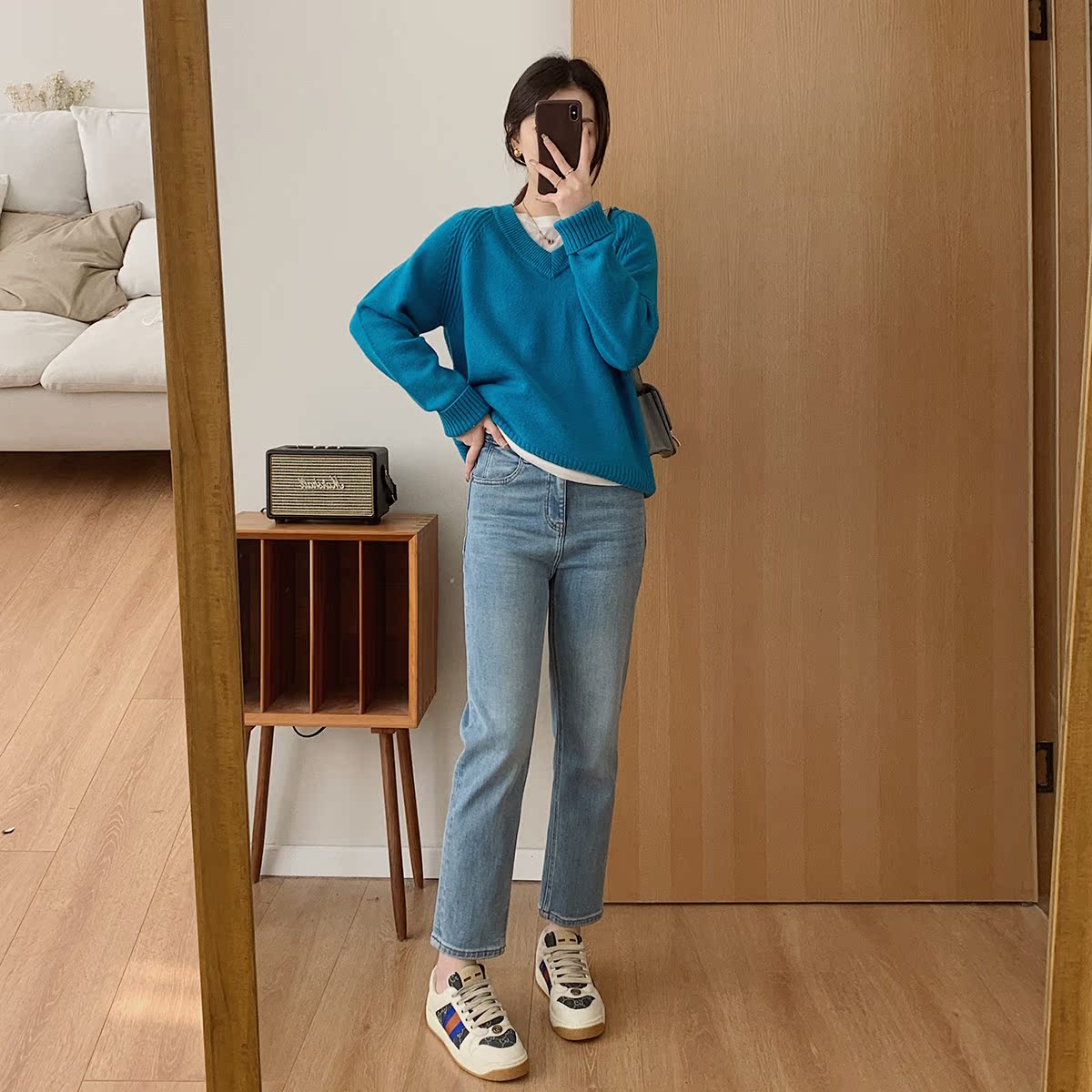 Large Restraint Explicit white color Full wool V collar Lazy Loose Sweater Women Spring New Thickening Needle Weaselwear