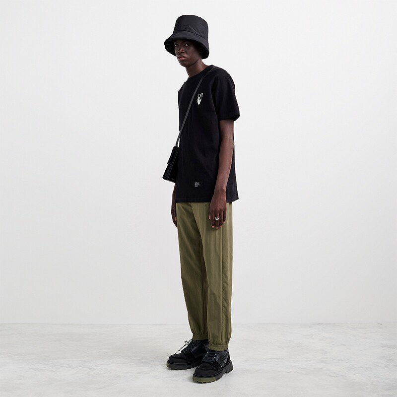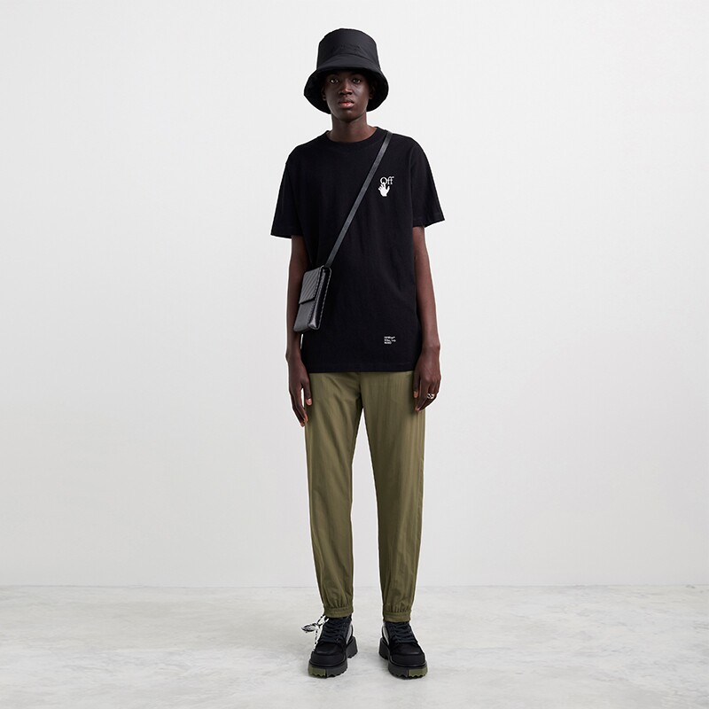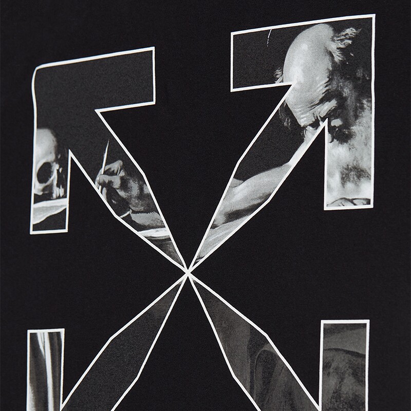 OFF-WHITE Men's Black Caravaggio Oil Painting Diagonal Arrow Short Sleeve Slim Crew Neck T-Shirt