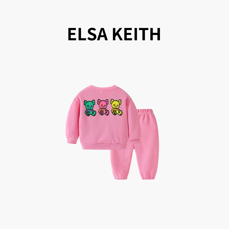 Japanese children's clothing ELSA KEITH Girls suit Spring 2022 new Korean version of the Korean Spiced Little Bear Print Two Sets