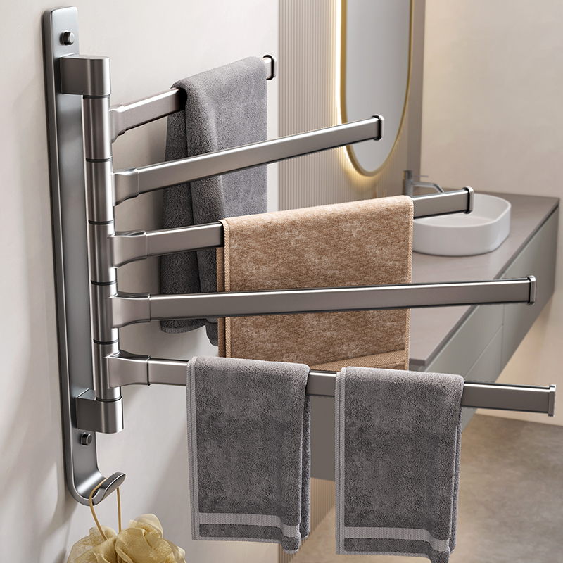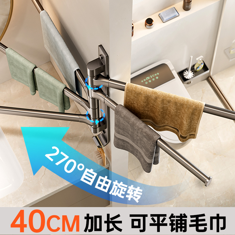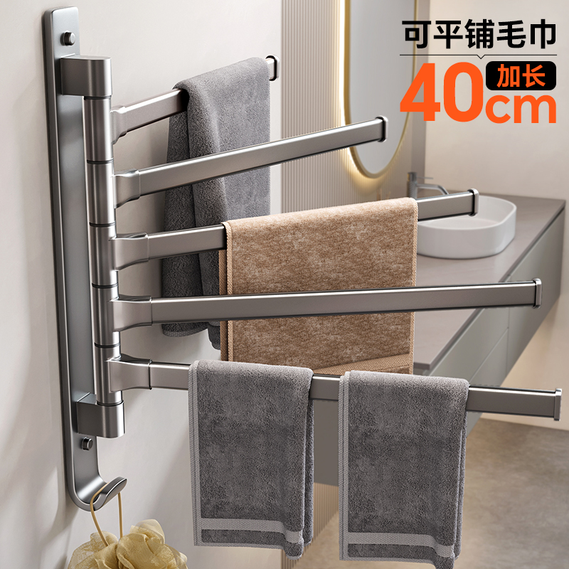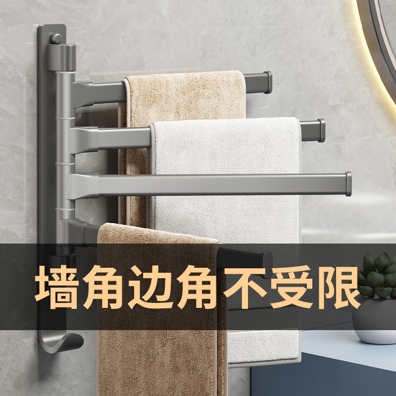 Gun Grey Rotating towel rack free of punch toilet shelving rack towel bar Bathroom God hanging towel rack-Taobao