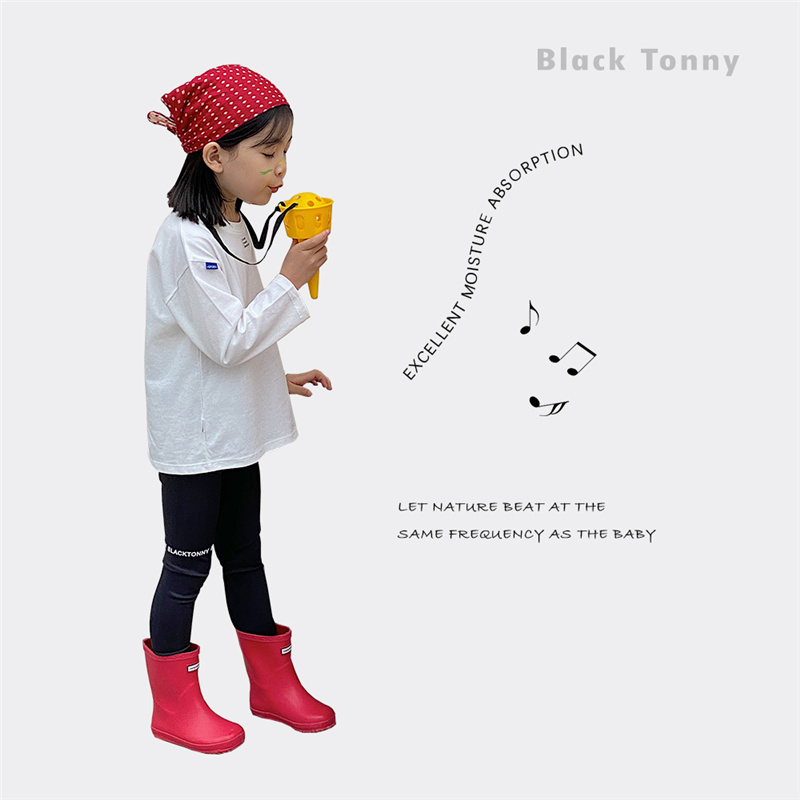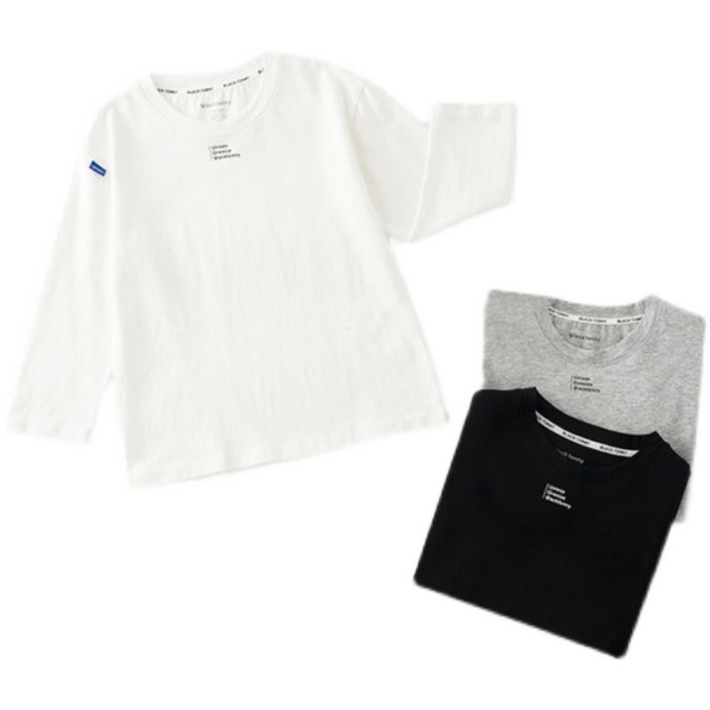 Small Black Trust 2022 Spring Dress New Boy Girl Long Sleeve Head Round Collar Suction Sweat Casual Child Pure T-shirt