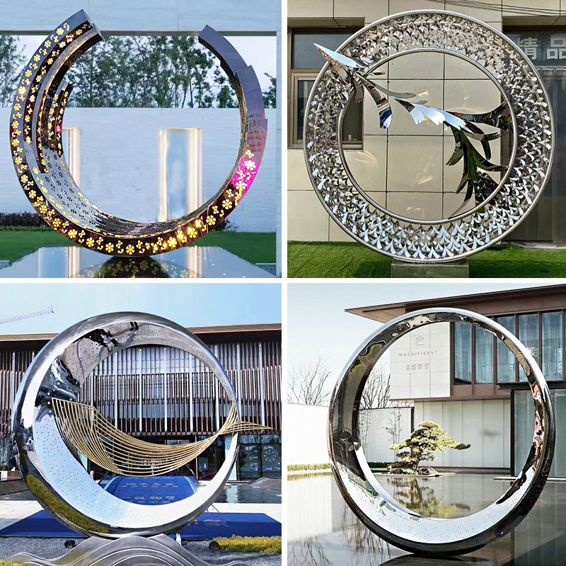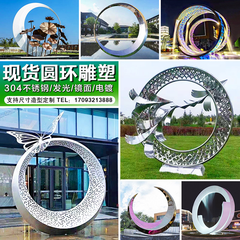 Large mirror stainless steel ring sculpture spot outdoor luminous hollow moon sample house display center landscape ornament customization