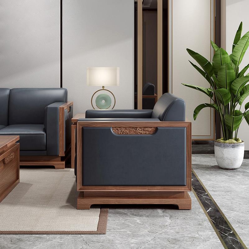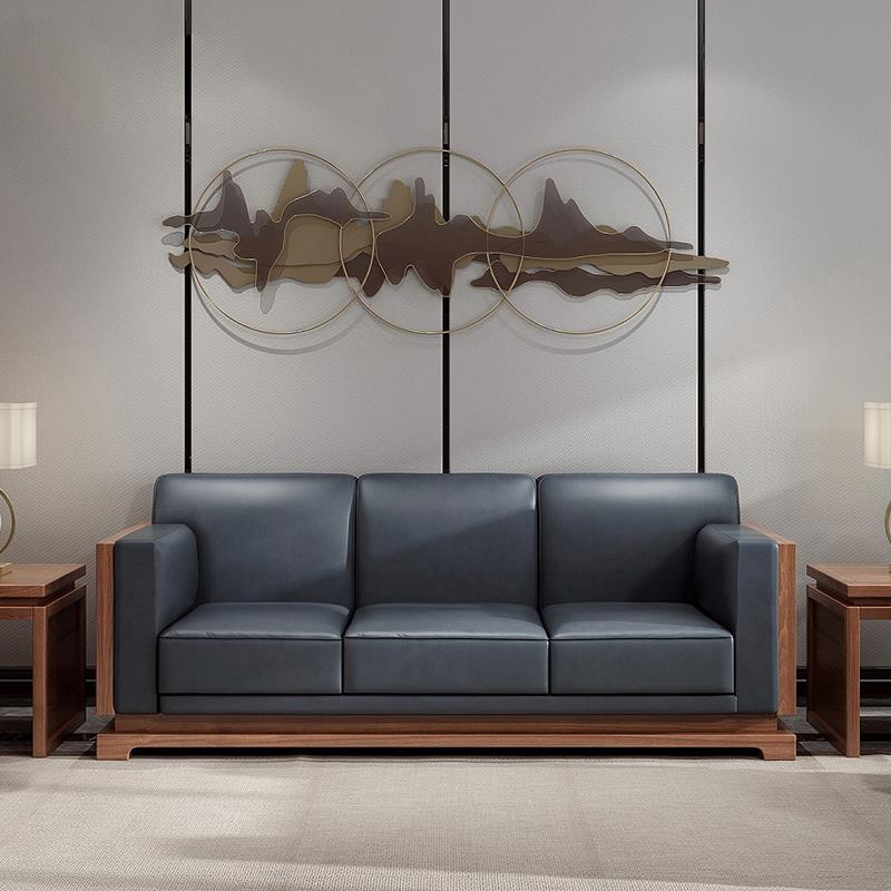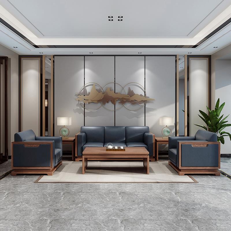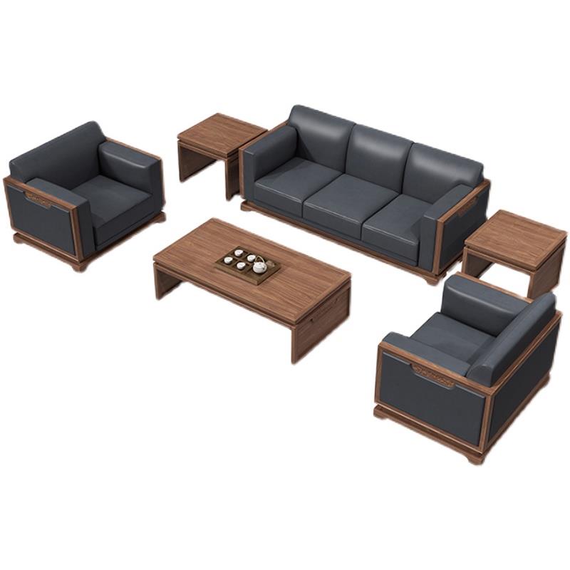 New Chinese style solid wood office sofa business meeting guest negotiation reception modern minimalist office sofa coffee table combination