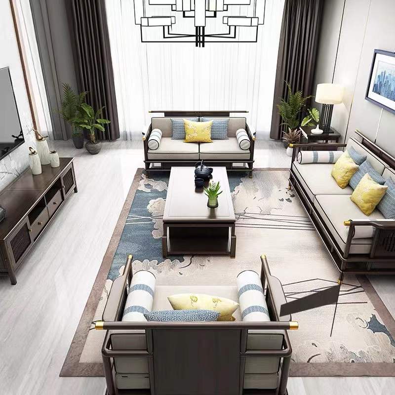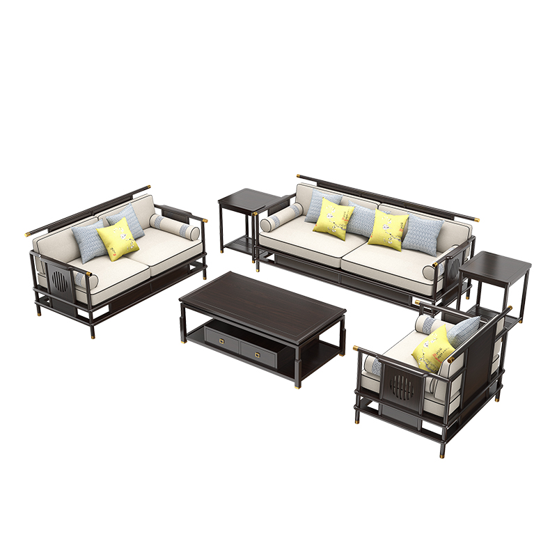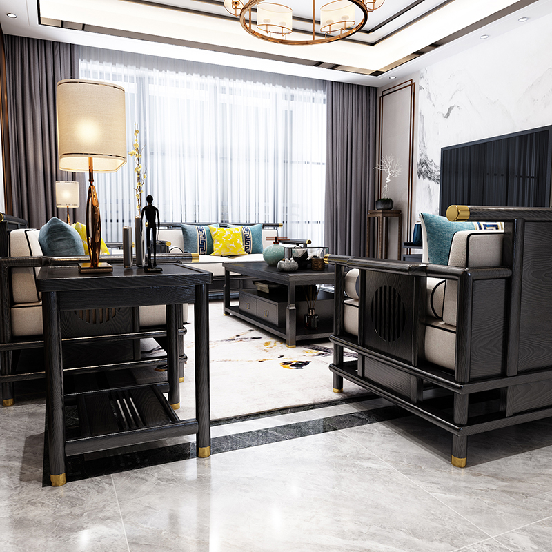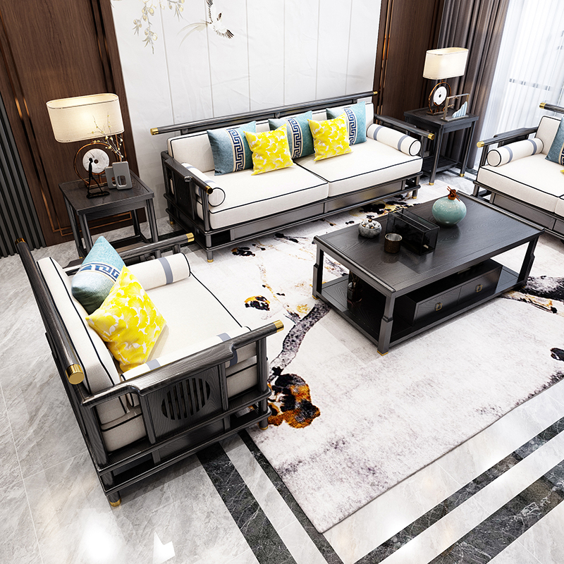New Chinese style sofa combination set all solid wood light luxury furniture small apartment living room fabric sofa meeting room customization