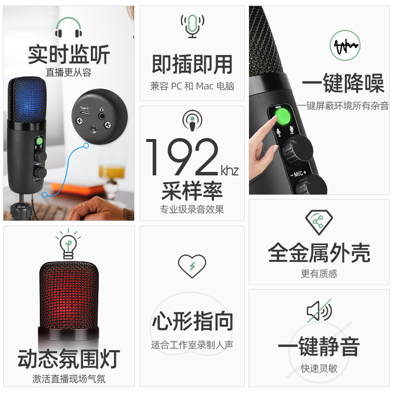 The Anemone Capacitive Microphone Smart Key Noise Reduction Game Live YY Voice K Song Computer USB Recording Microphone