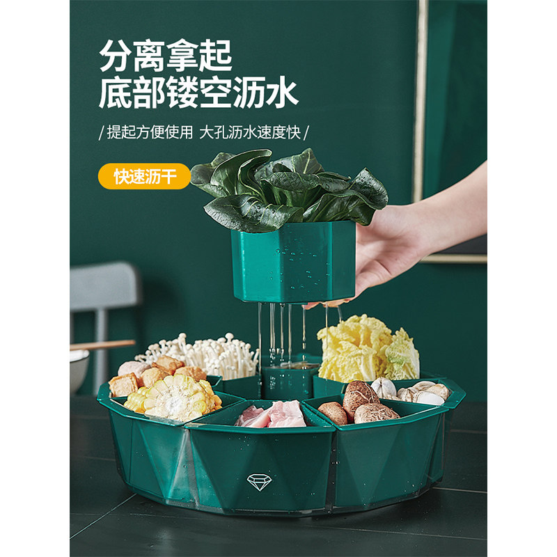 Hot pot plate home kitchen nine-point grid with plate drain basket hot pot plate light luxury wind can rotate to wash the plate