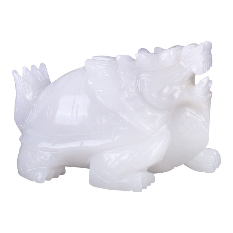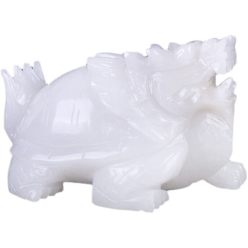 Natural jade white marble rough stone carving one dragon turtle living room home decoration jade carving dragon head turtle decoration jade