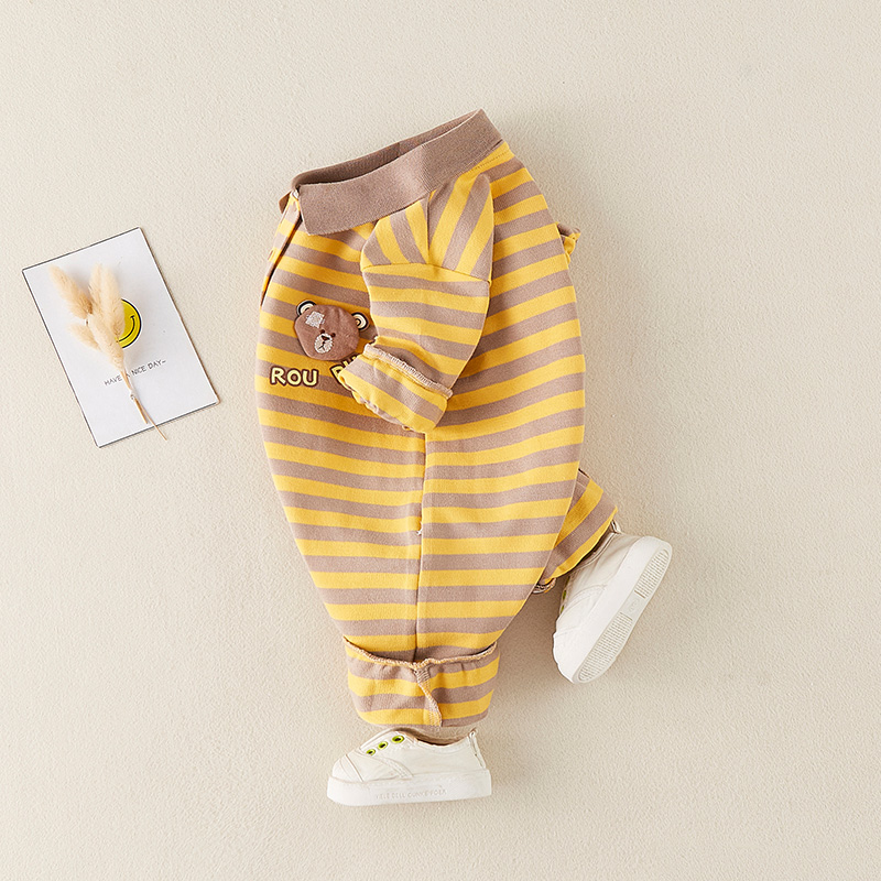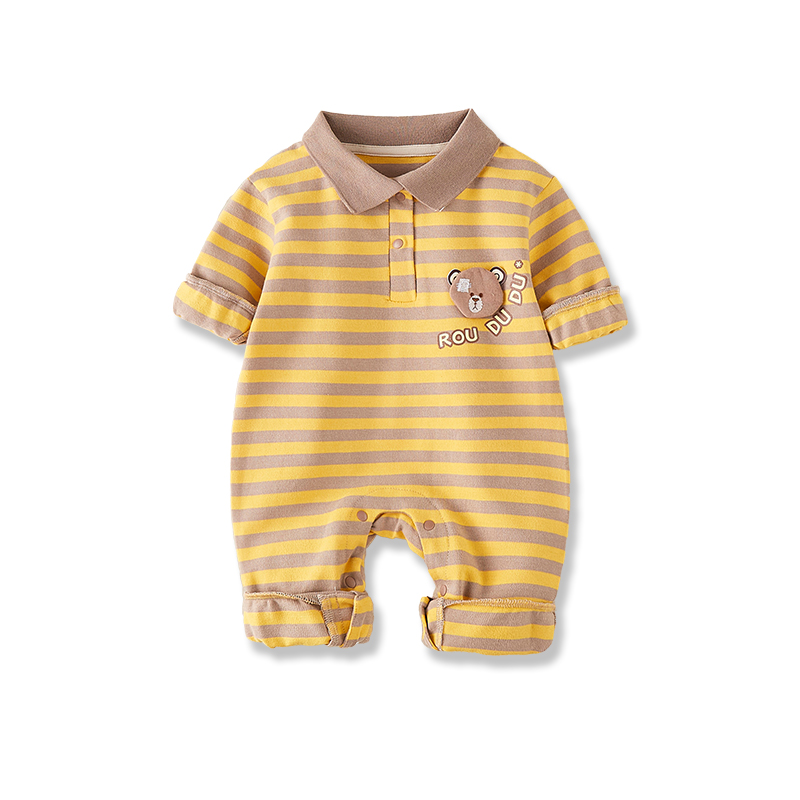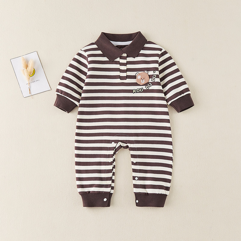 Baby is even outfitted for spring and autumn wearing a foreign striped striped khae cartoon cute super cute and climbing suit baby's spring clothing wave