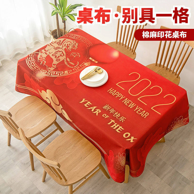 2022 New Year Theme Tablecloth Spring Festival New Year Tiger Red Festive Tablecloth Waterproof and Oil-proof Tablecloth New Year