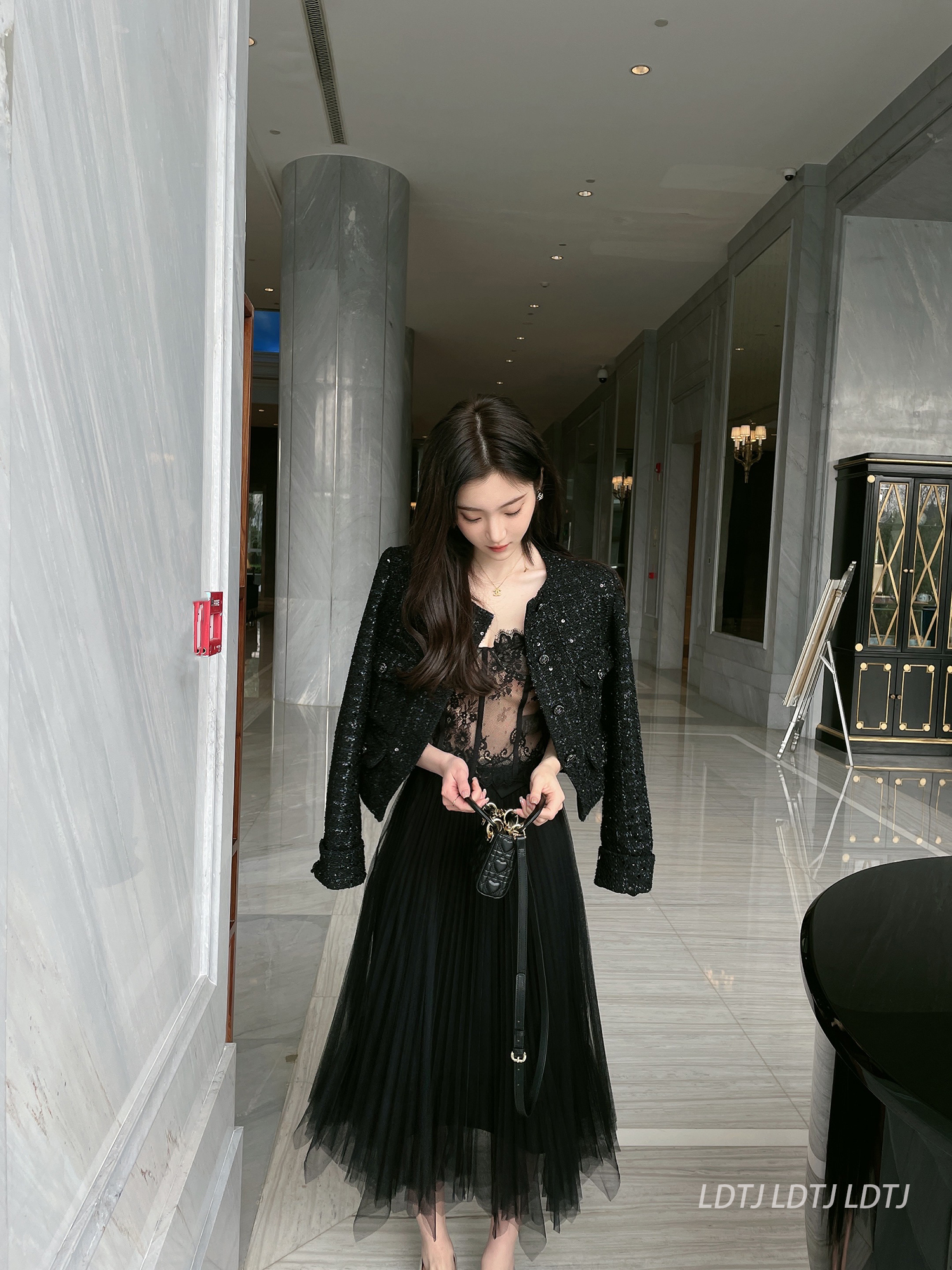 LDTJ high-definition 22 summer new black swan French elegant high-end temperament irregular design mesh skirt women
