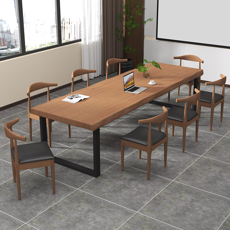 Iron Art Solid Wood Meeting Table And Chairs Combination Brief Modern Desk Bench Log Desk Log Negotiation Long Bar Table