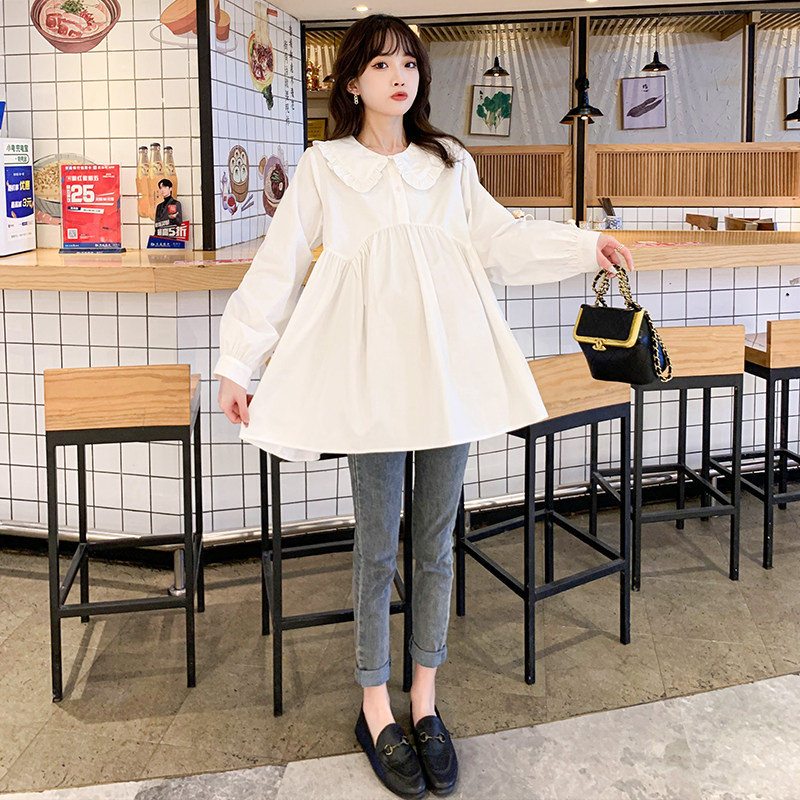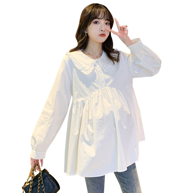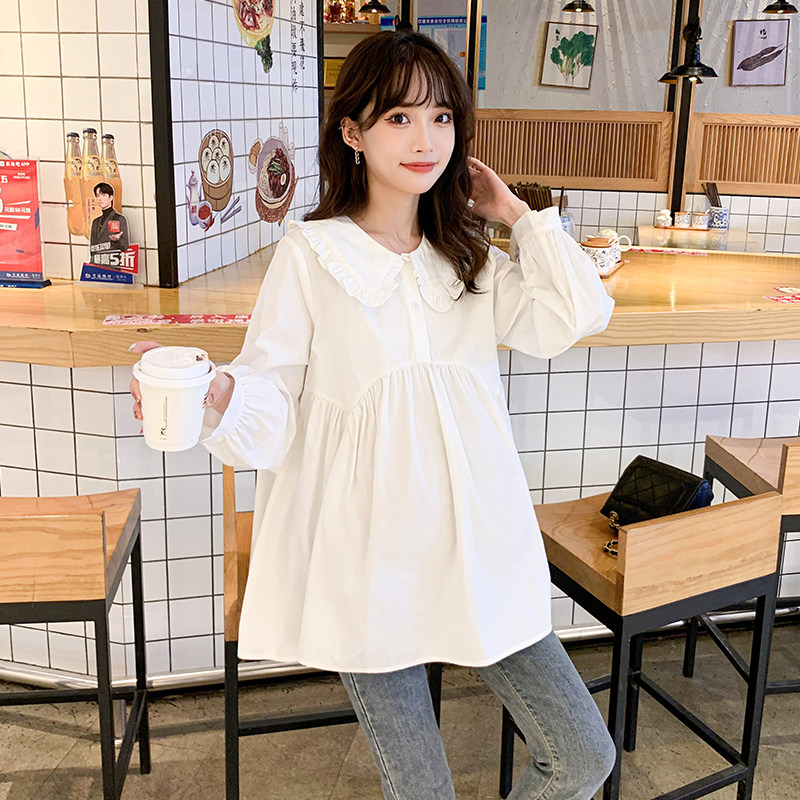 Pregnant woman Spring and autumn suit new blouses dolls collar sweet and temperamental white shirt with loose foreign pie for two sets
