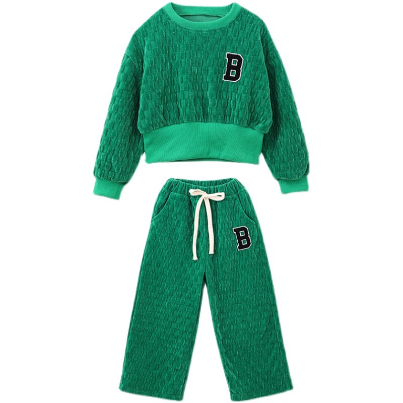 Girls' spring and autumn suits fashion pullover Korean children's 2022 new children's checkerboard wide-leg pants two-piece set