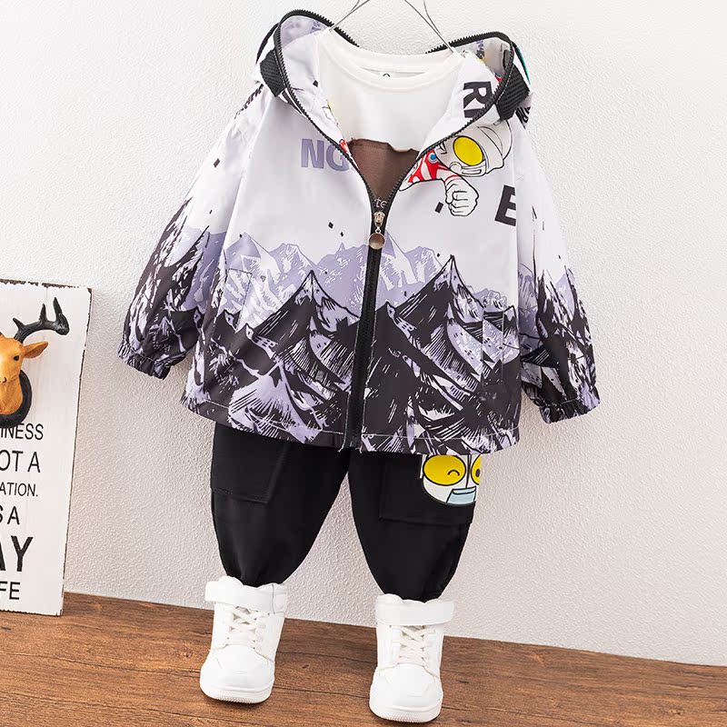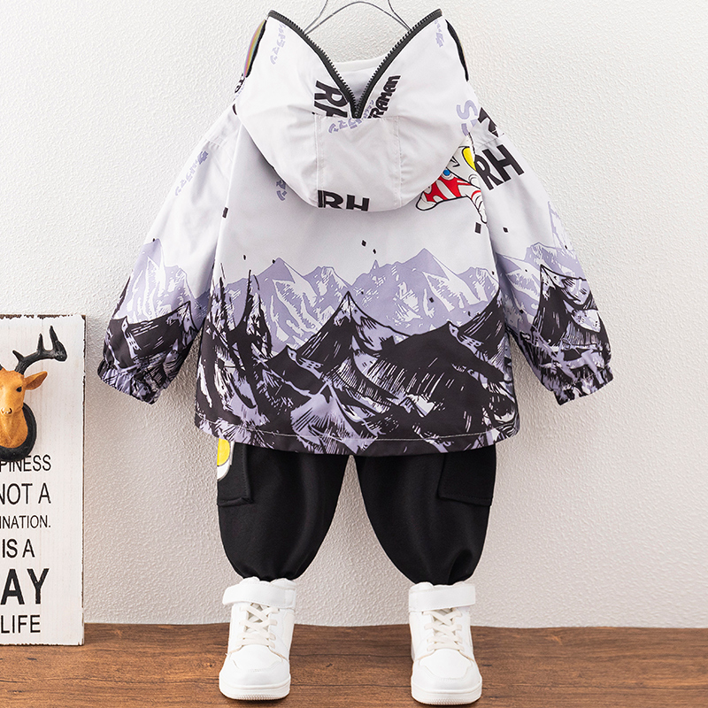 Ultraman clothes boy jacket 2022 spring children's cartoon pattern suit casual fried street sports two-piece suit