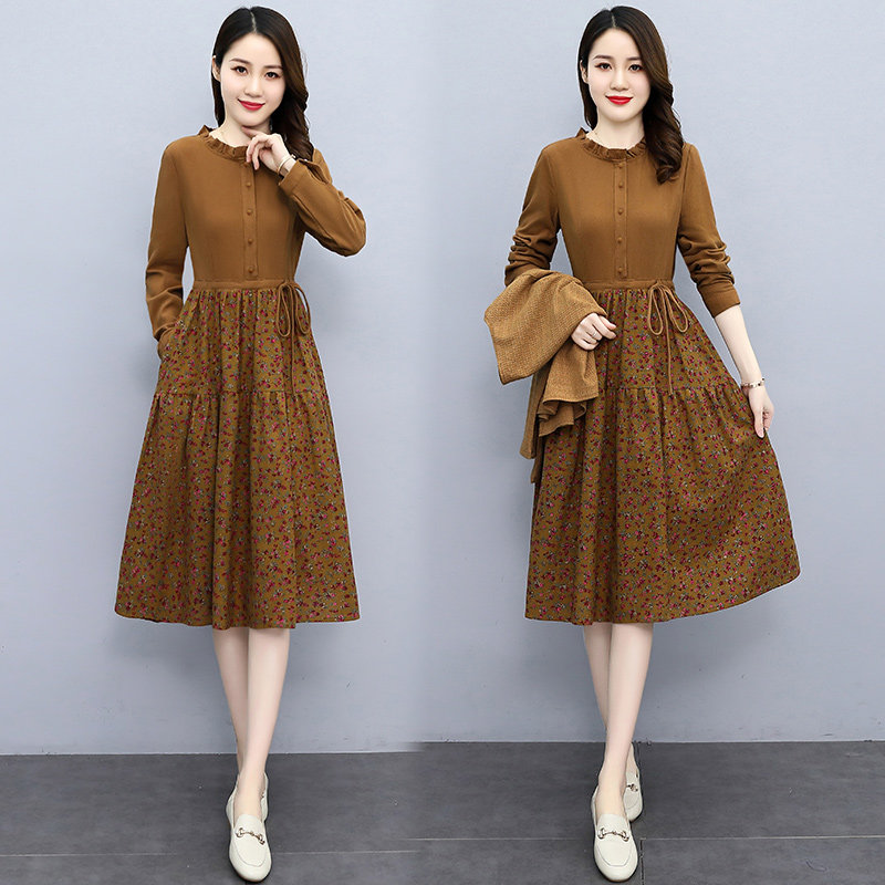 Sijiqing women's new Hangzhou 2022 spring and autumn temperament floral skirt waist-length cotton and linen dress